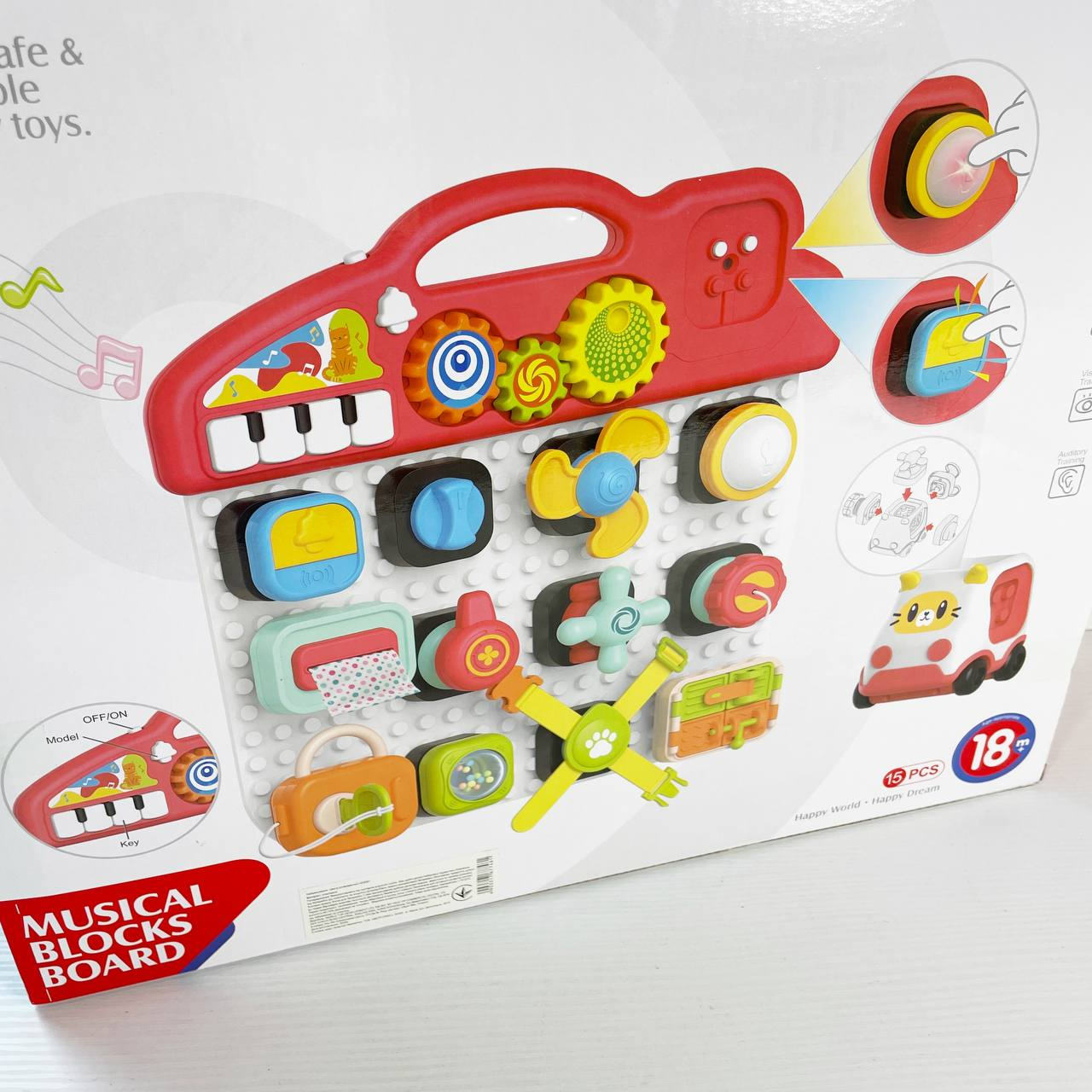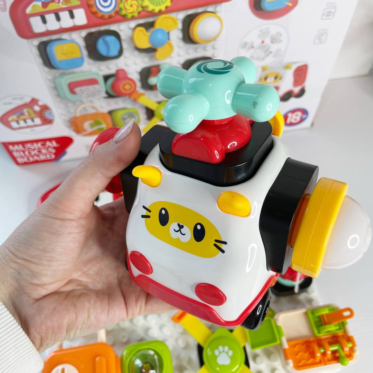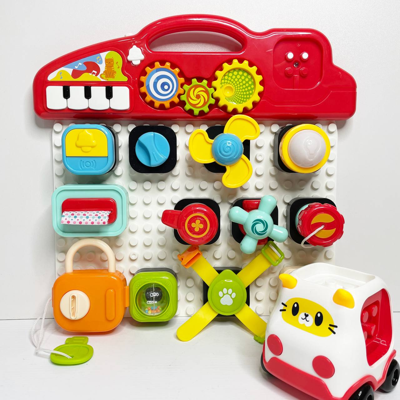 Центр розвиваючий бізіборд-конструктор з піаніно,шестернями,спінер,рух.деталі з світловими-музичними ефектами HE8081