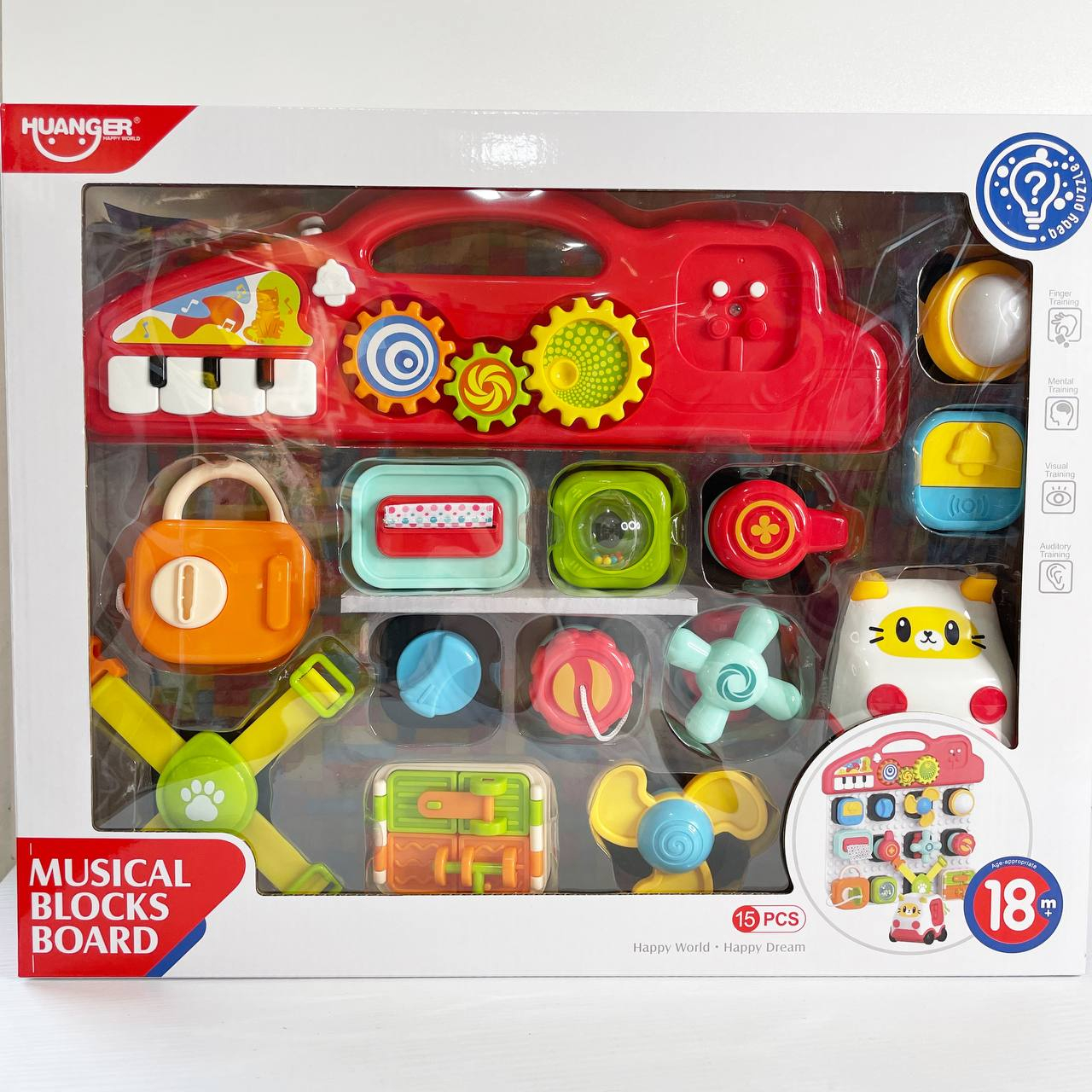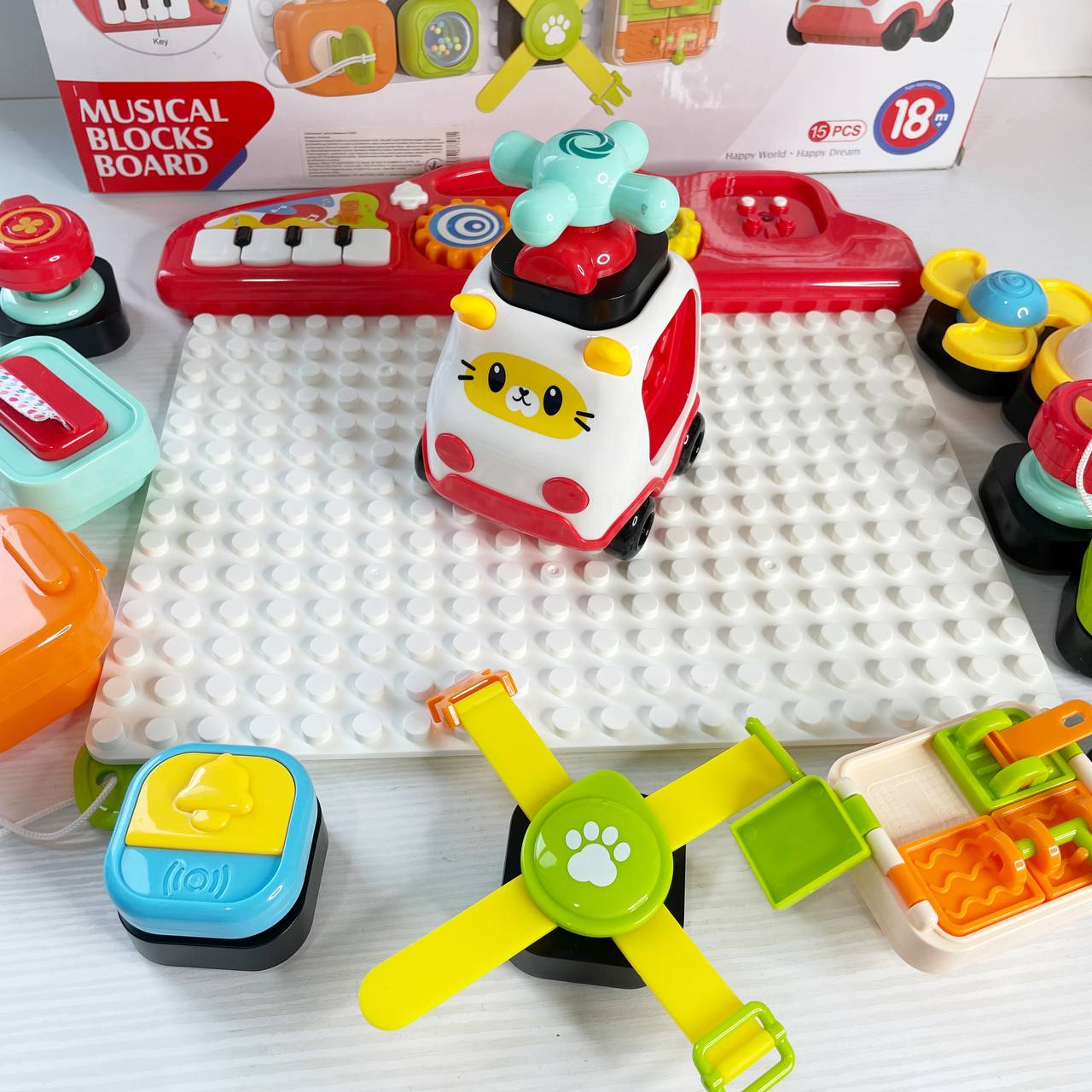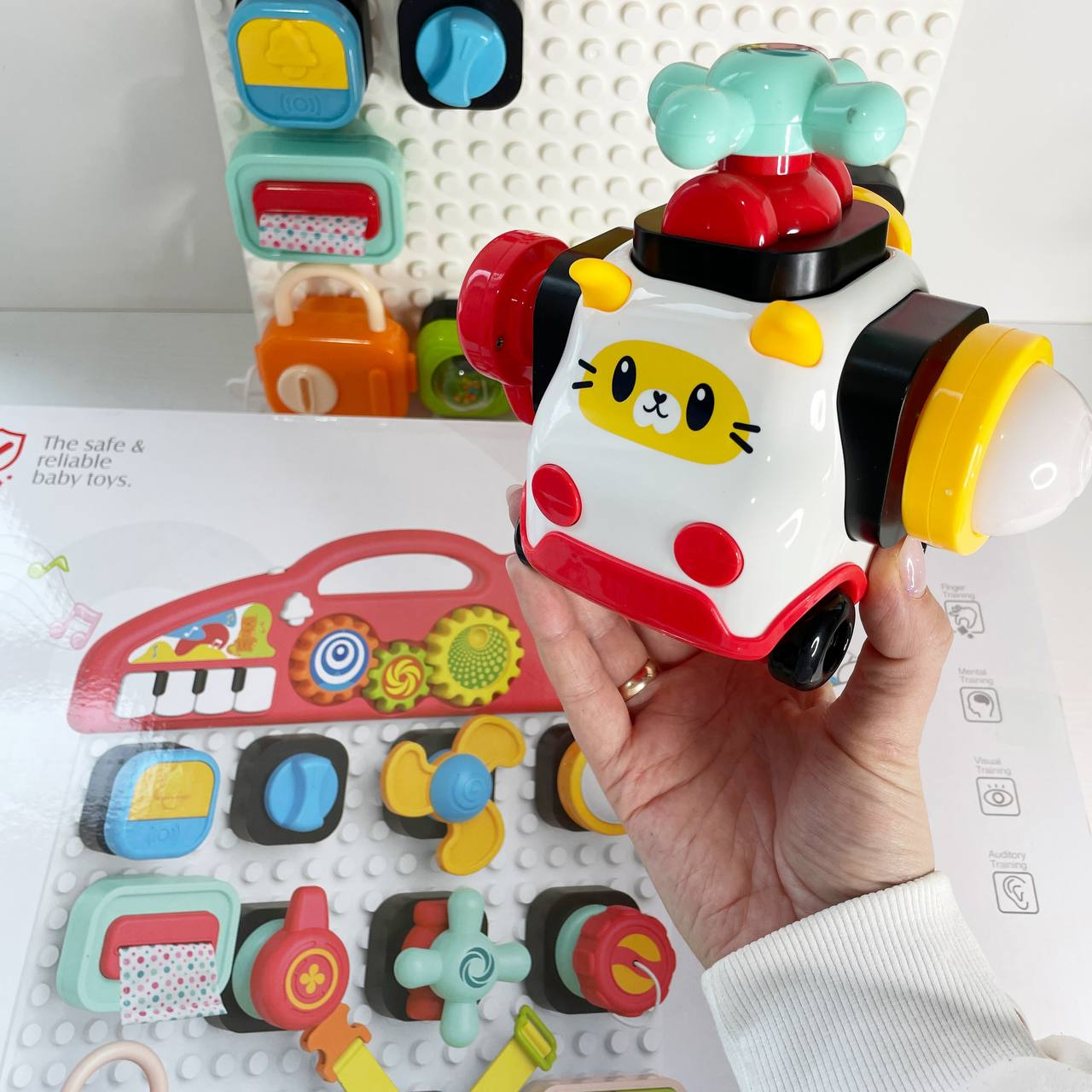 Центр розвиваючий бізіборд-конструктор з піаніно,шестернями,спінер,рух.деталі з світловими-музичними ефектами HE8081