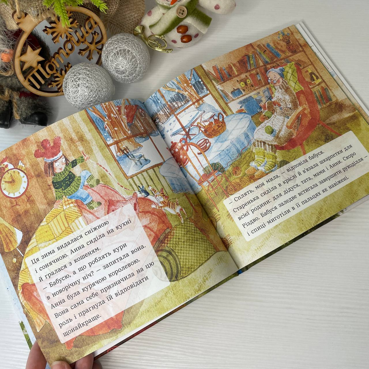 Друга історія про курячу королеву Анну занурить малечу в атмосферу різдвяних свят. Коли дідусь ставить ялинку, а бабуся завершує приготування подарунків, дівчинка помічає темні вікна курника… і вирішує влаштувати у своєму королівстві найкраще у світі Різдво! Піддані не відразу зрозуміли задум Анни й завдали їй добрячого клопоту. Та невже тільки чемні кури заслуговують на веселе свято?