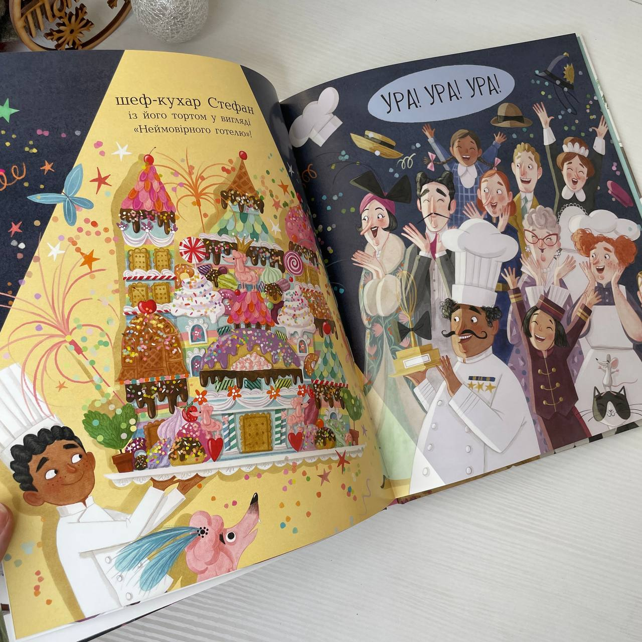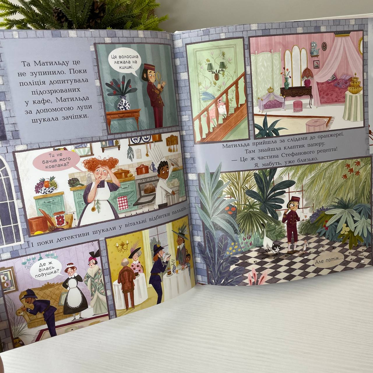 У самому серці чарівного Делоне стоїть «Неймовірний готель», де готуються провести Всесвітній конкурс пекарів. Шеф-кухар Стефан має взяти участь у ньому, тому щодень удосконалює свій суперсекретний рецепт шоколадного торта. Та перед початком змагання рецепт зникає. Хто міг би наважитись на таке? На щастя, Стефан має вірну подругу Матильду — найкращу детективку Делоне. Чи вдасться їй розплутати загадку й урятувати чемпіонат?Ця чудово ілюстрована книжка-картинка від нагородженої ілюстраторки Ізабель Фоллат і авторки Кейт Девіс чарівно поєднує мистецтво кулінарії з нотками детективу. На кожній сторінці — тепла атмосфера, яскраві персонажі й безліч затишних деталей, серед яких так легко загубитися.