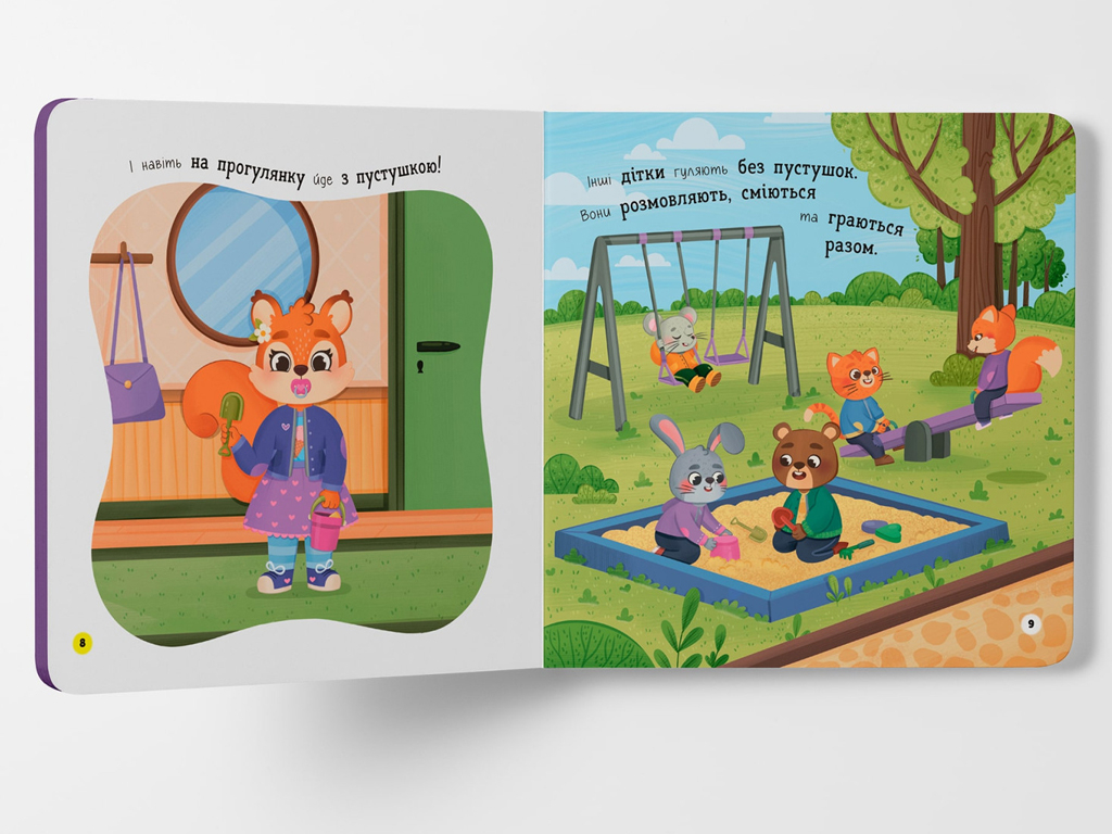 Книжка «Самостійний малюк. Бувай, пустушко!» створена для підтримки дитини у процесі відмови від пустушки та розвитку навичок самостійності. Авторка Катерина Столяренко пропонує дитині спостерігати за милою героїнею‑білочкою, яка поступово прощається з пустушкою, розуміючи, що вона заважає гризти фрукти, знайомитись з іншими дітьми, співати та сміятись. Через яскраві ілюстрації, простий текст та ігровий підхід книжка допомагає маленькому читачеві віком від близько 1 року відчути позитивну мотивацію «стати великим» без пустушки. Видання випущено видавництвом Crystal Book у міцному твердій палітурці, формат‑компакт для дитячих рук. Матеріал структурований так, що батьки можуть використовувати його як інструмент для спілкування, обговорення, створення ритуалу переходу, як‑от написати листа феї або вибрати подарунок замість пустушки. Книга підходить для перегляду разом із дорослим або самостійного знайомства під наглядом — стимулює мовлення, розвиток емоційного сприйняття й ідентифікацію нового статусу «без пустушки».