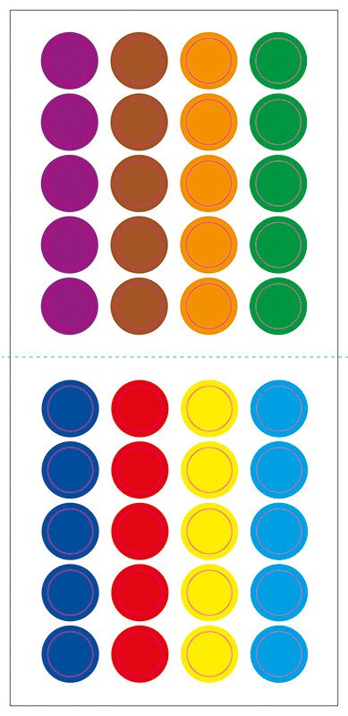 Книжка з наліпками для найменших діточок. Знайди до кожного малюнка кружечки потрібного кольоруі й наклей їх. Наліпки можна наклеювати й відклеювати кілька разів. Завдяки ламінованим сторінкам це робити легко і весело. Вивчайте разом з дитиною кольори і розвивайте крихітні пальчики. Призначено для дітей віком від 2 років.