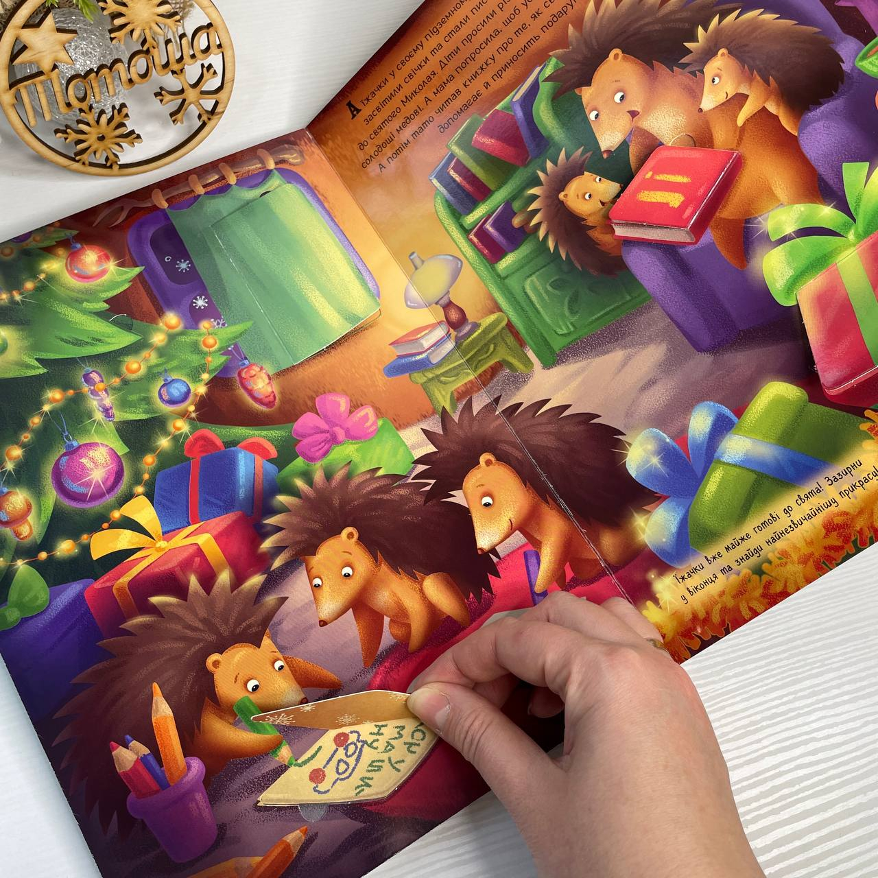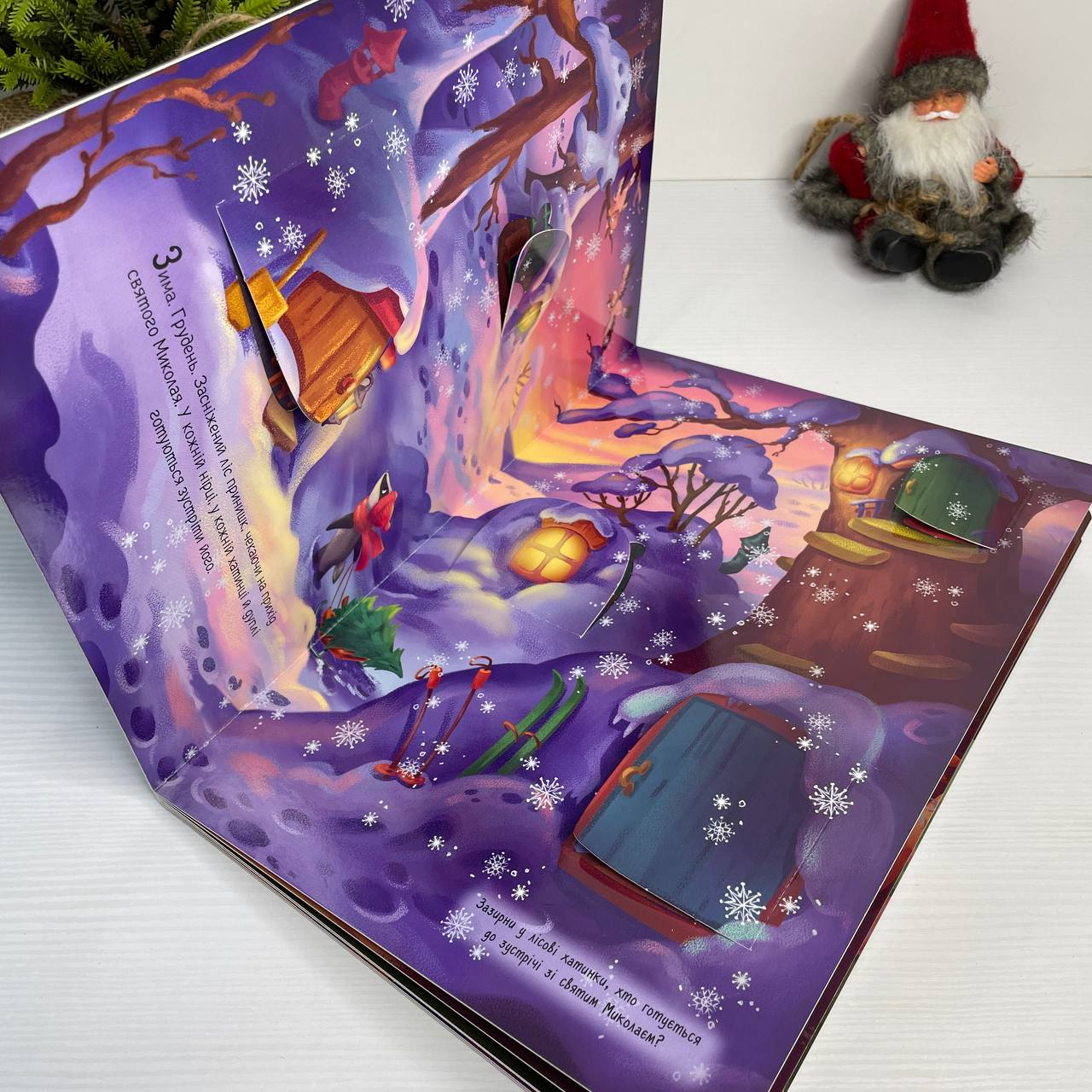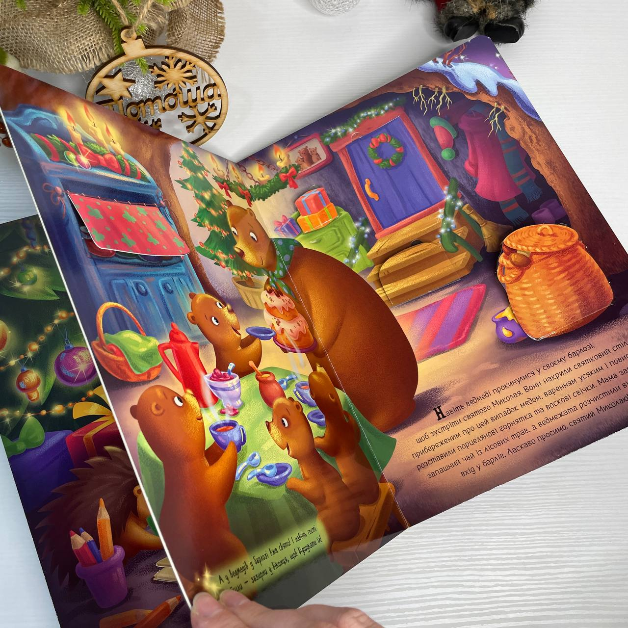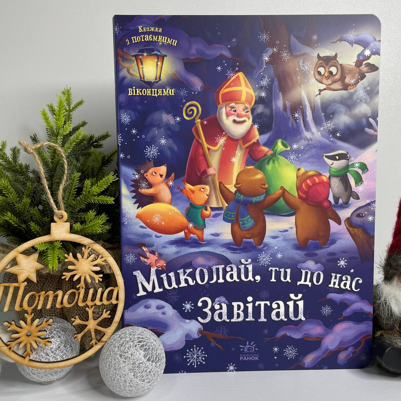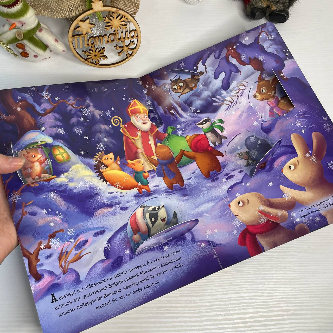 Як зустрічають звірята Святого Миколая, що приховують потаємні віконця на кожній сторінці, як приготуватися до візиту Миколая - про все розповість книга-картонка з віконцями.