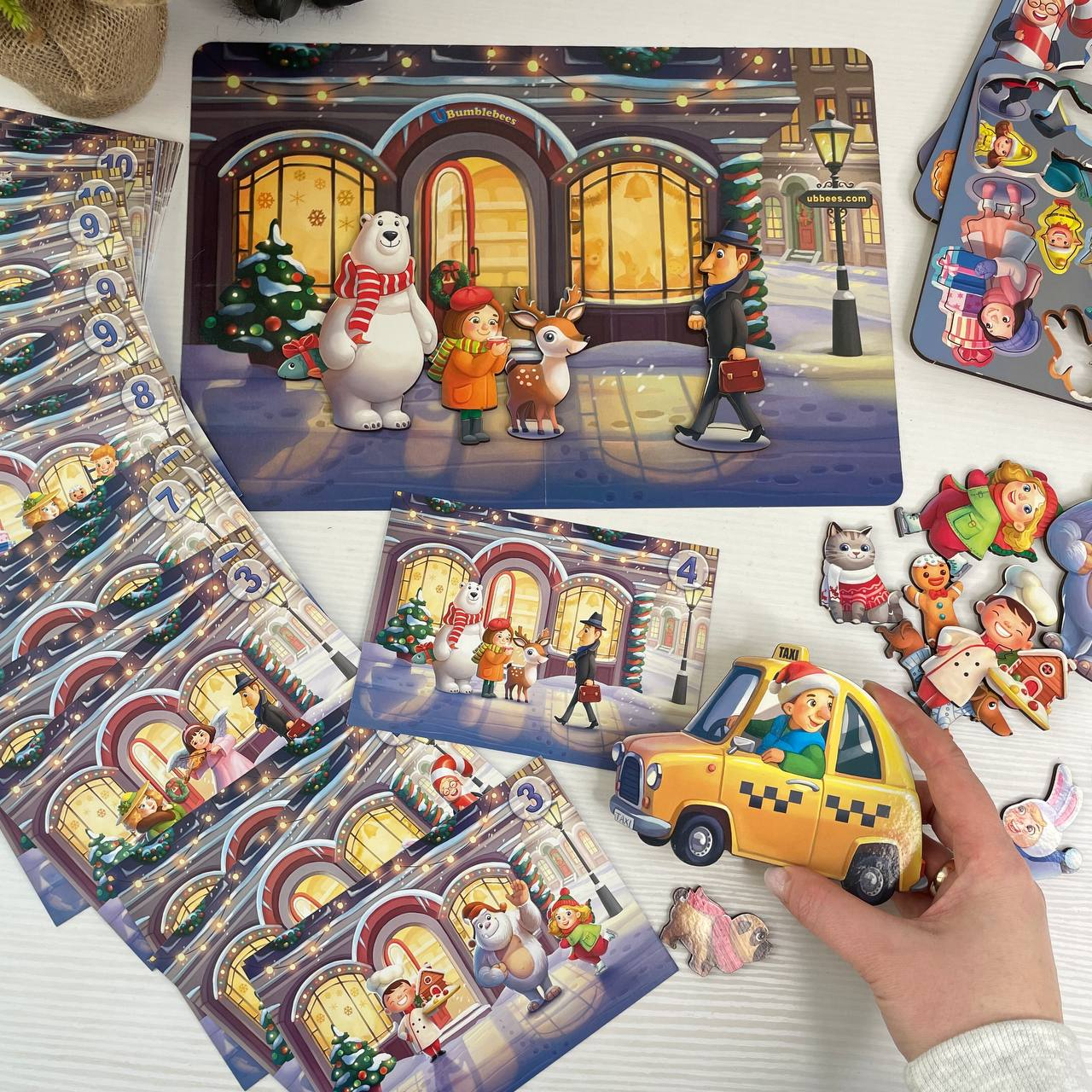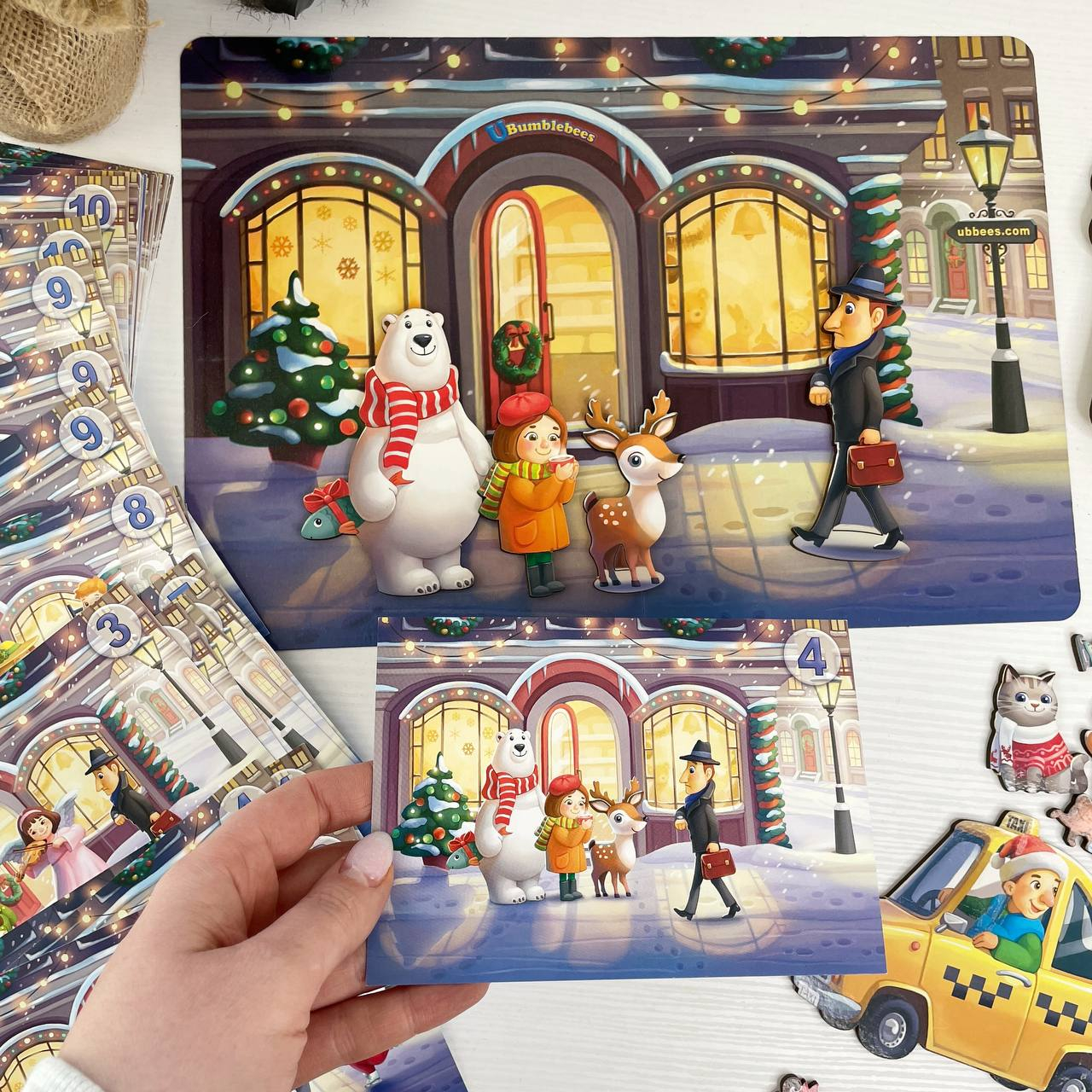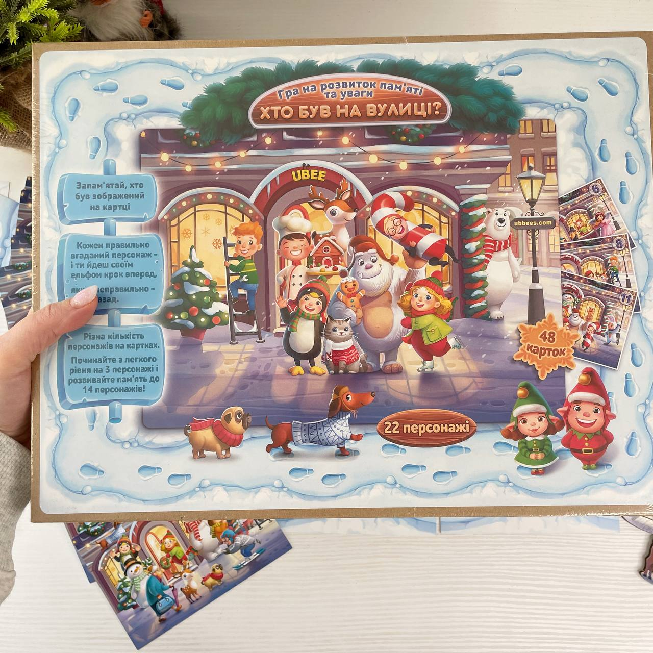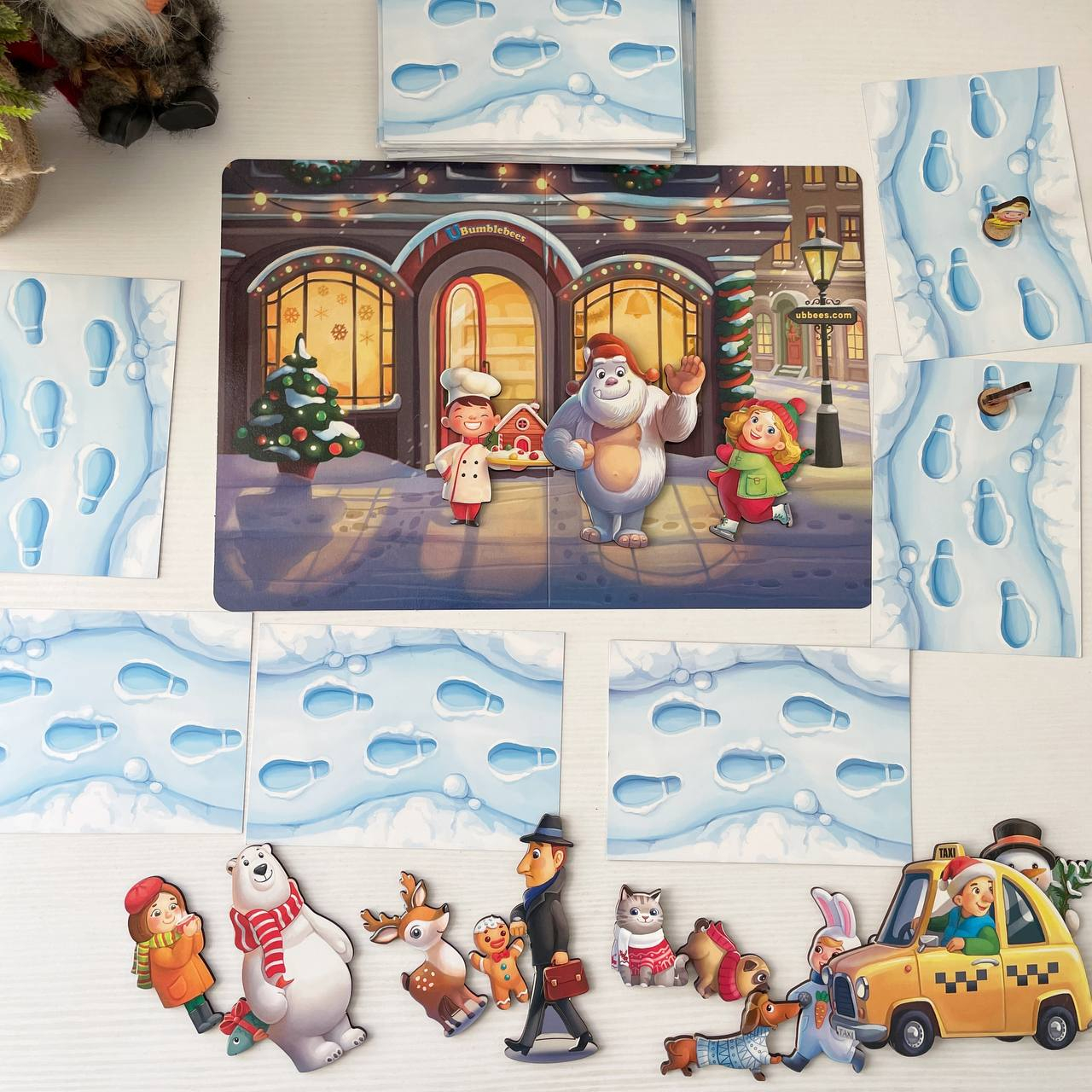 На вулиці залишились сліди... Хто там був? У грі дитина тренує спостережливість і памʼять: запам’ятай персонажів, обери потрібних, і якщо вгадав — твій ельф робить крок вперед! Весела змагальна гра на розвиток памʼяті, уваги та командну взаємодію.