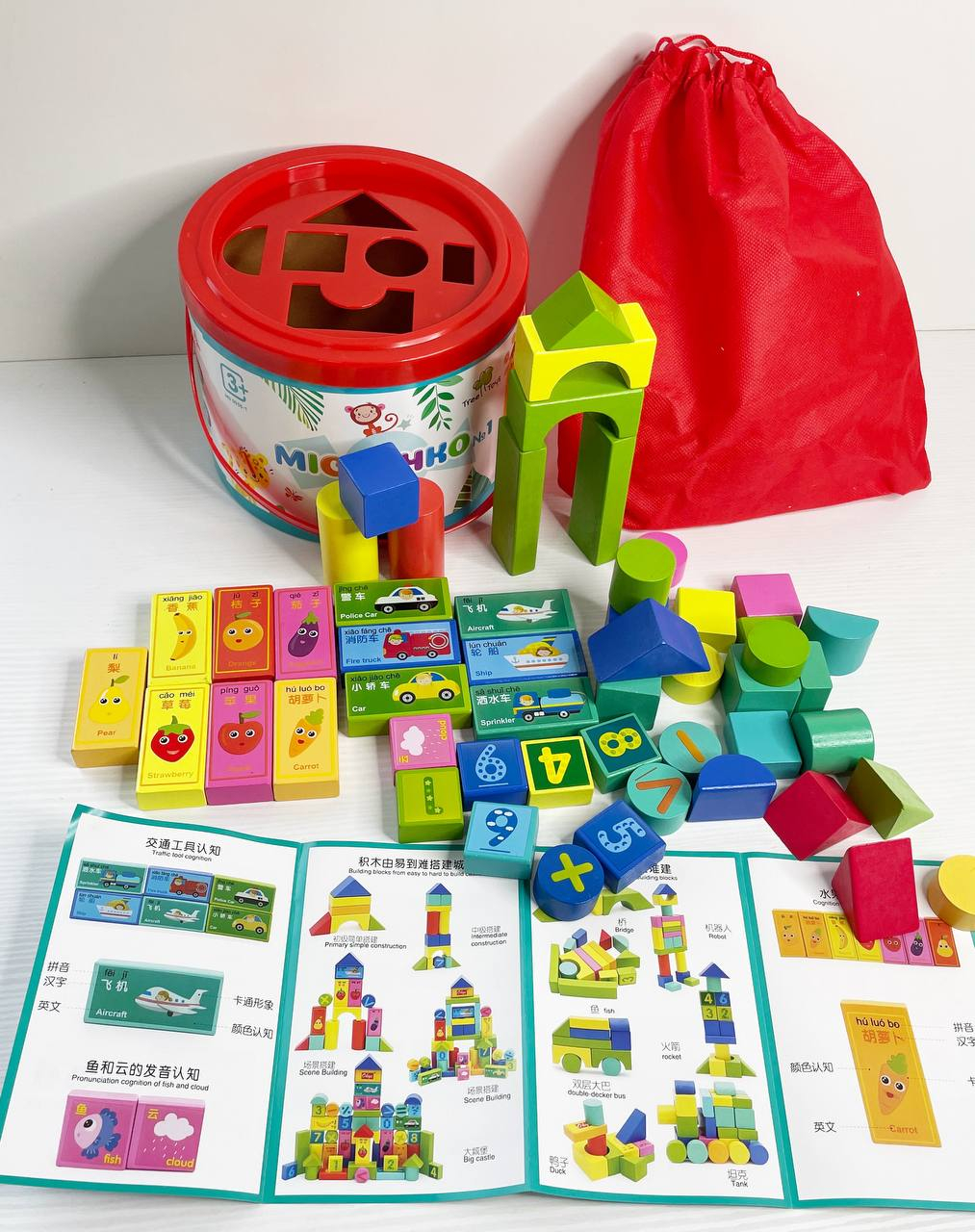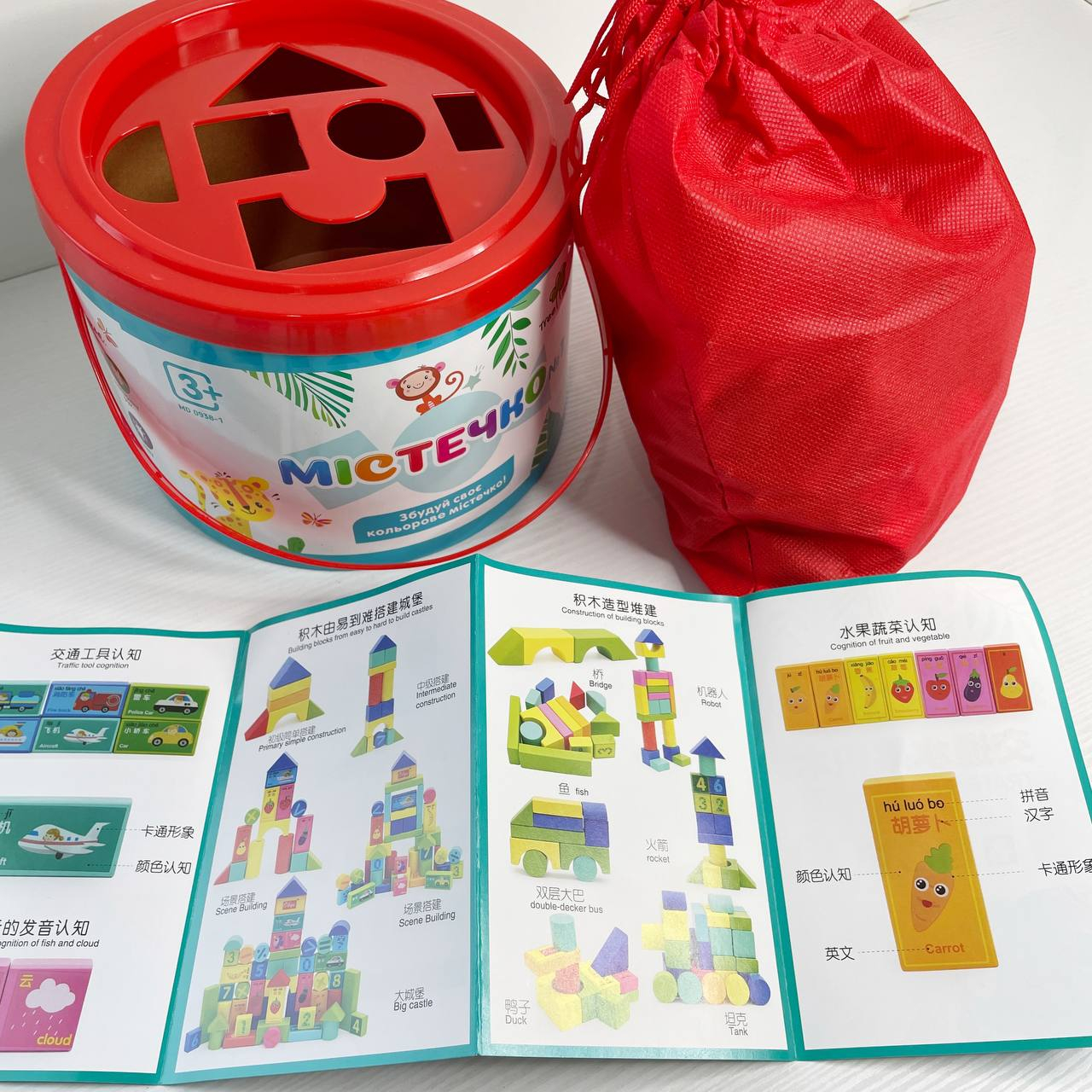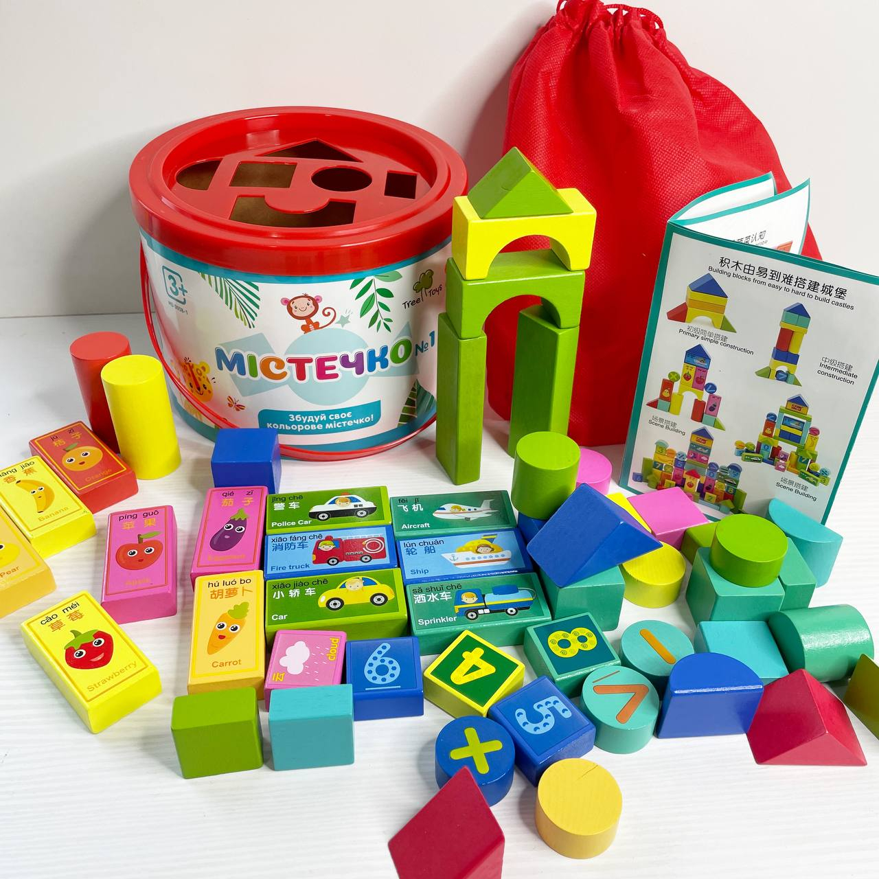 Дерев'яні блоки Містечко у відрі (цифри,транспорт,овочі,фрукти),сортер, MD 0938-1