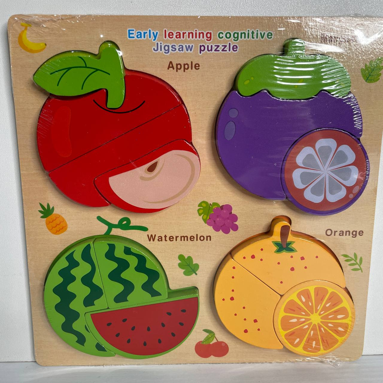 Дерев'яна рамка - вкладиш (пазл) Фрукти з об'ємними фігурами, MD 0771