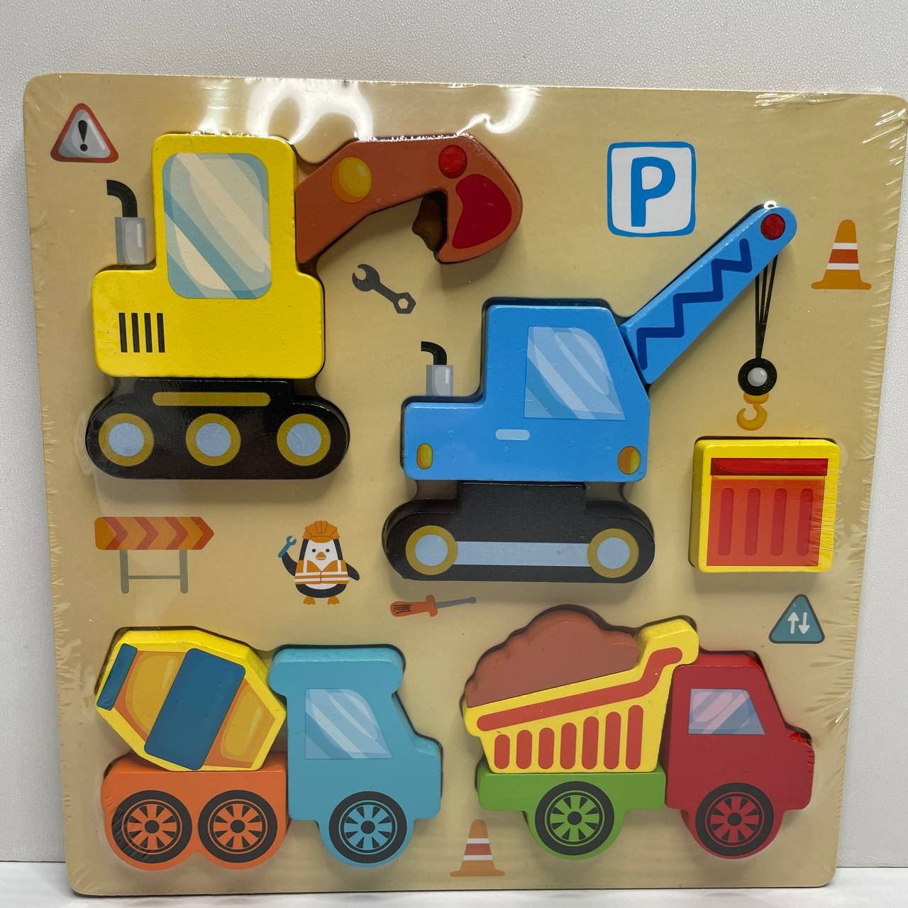 Дерев'яна рамка - вкладка (пазл) Будівельна техніка із обємними фігурами