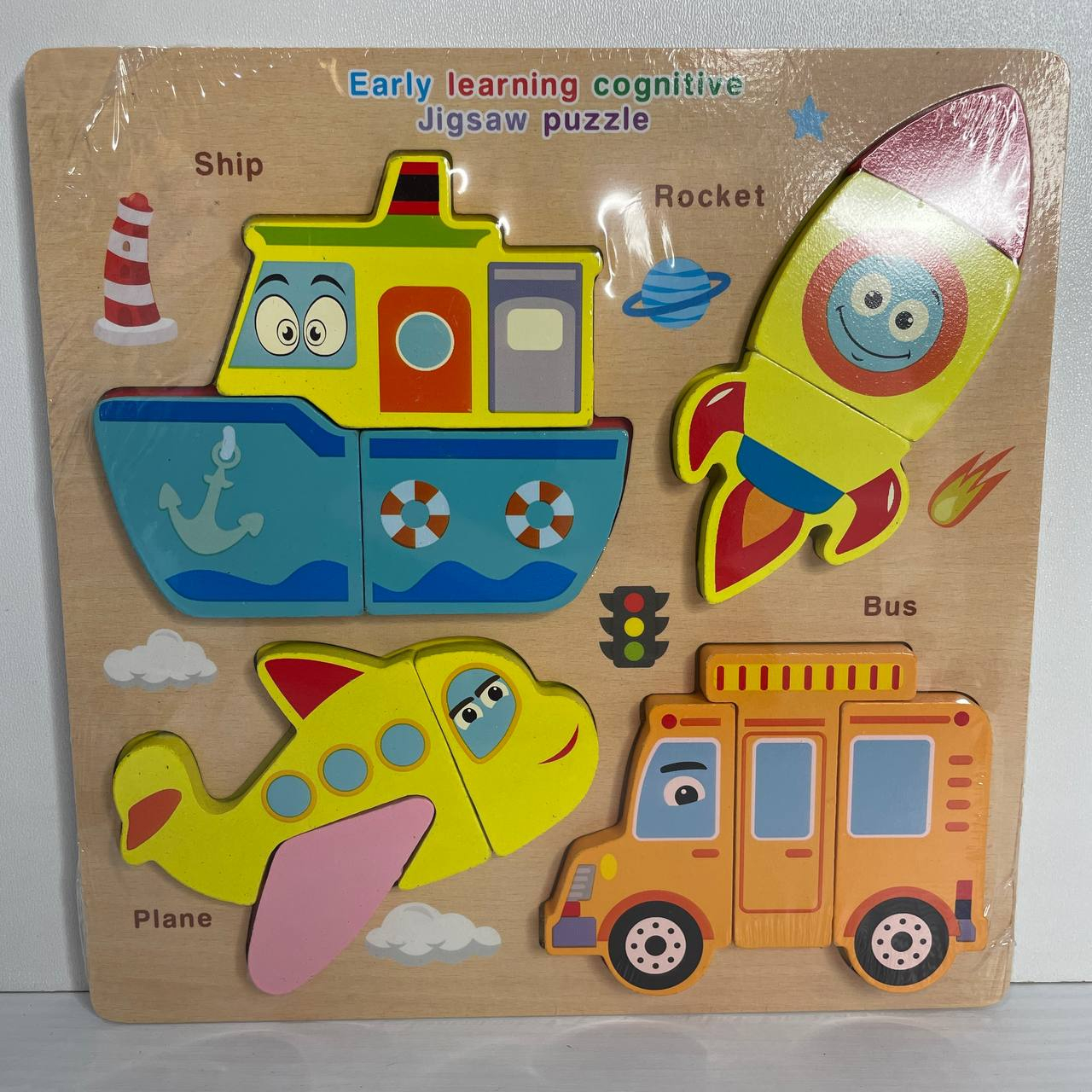 Дерев'яна рамка - вкладиш (пазл) Транспорті з об'ємними фігурами, MD 0771
