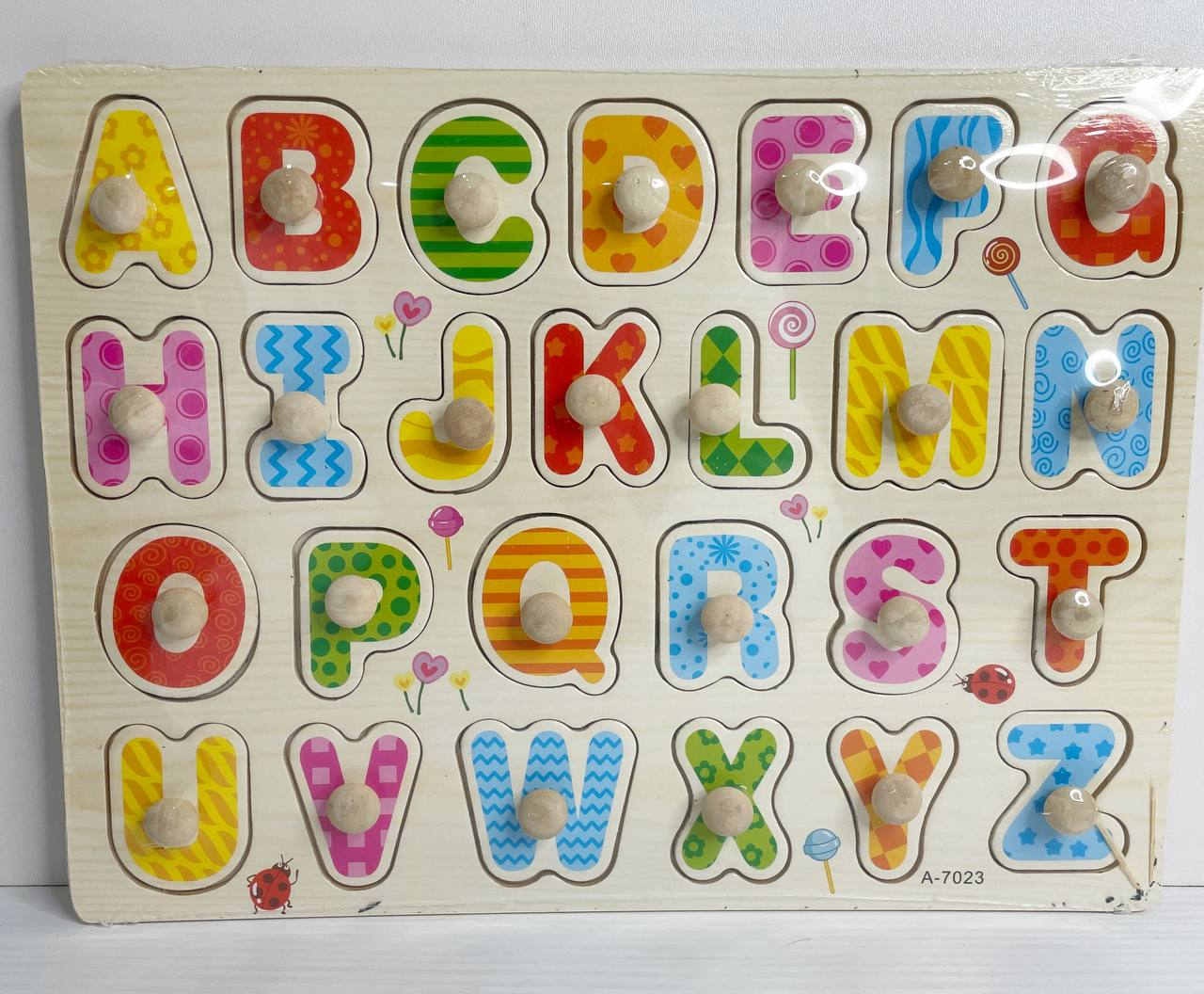 Дерев'яна рамка - вкладиш з ручками та дублюючим малюнком Англійська абетка
