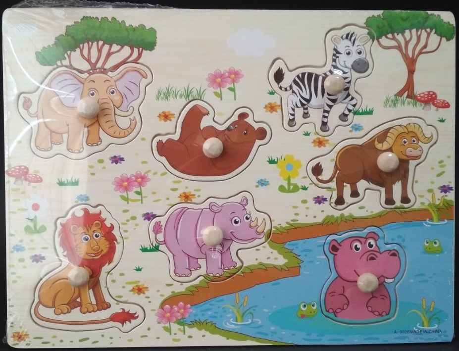 Дерев'яна рамка - вкладиш з ручками та дублюючим малюнком Тварини