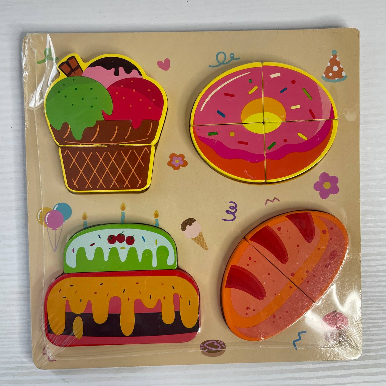 УЦІНКА!!! Дерев'яна рамка - вкладка (пазл) Солодощі із обємними фігурами