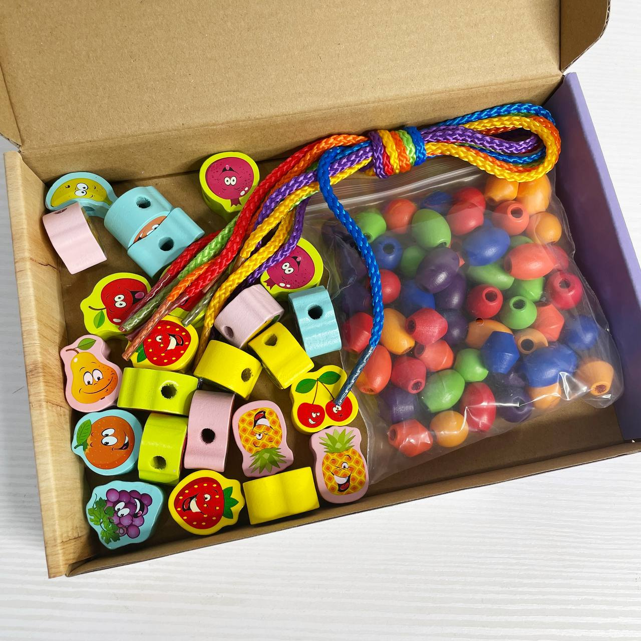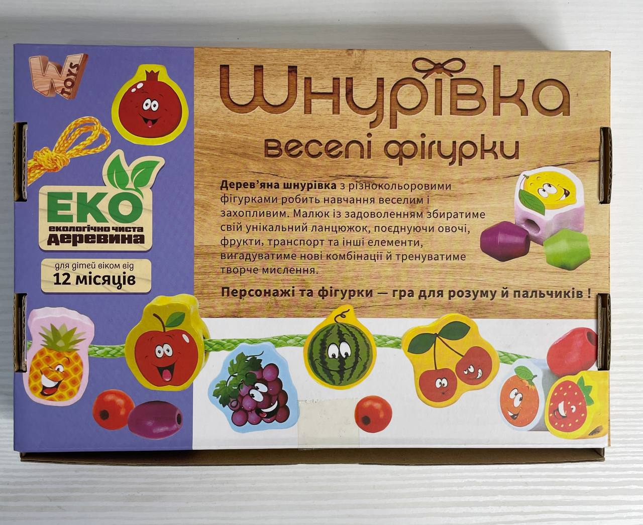 Шнурівка «Веселі фігурки» — граємося та розвиваємося одночасно! Яскравий дерев’яний набір із кумедними овочами та намистинками перетворює звичайну гру на захопливий процес навчання. Малюк нанизує фігурки на шнурочки, тренує пальчики та вчиться поєднувати кольори й форми. Ідеально для перших занять із дрібною моторикою та логікою.