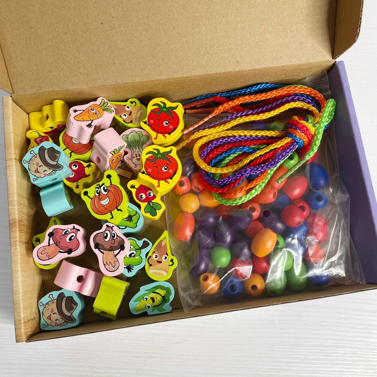 Шнурівка «Веселі фігурки» — граємося та розвиваємося одночасно! Яскравий дерев’яний набір із кумедними овочами та намистинками перетворює звичайну гру на захопливий процес навчання. Малюк нанизує фігурки на шнурочки, тренує пальчики та вчиться поєднувати кольори й форми. Ідеально для перших занять із дрібною моторикою та логікою.