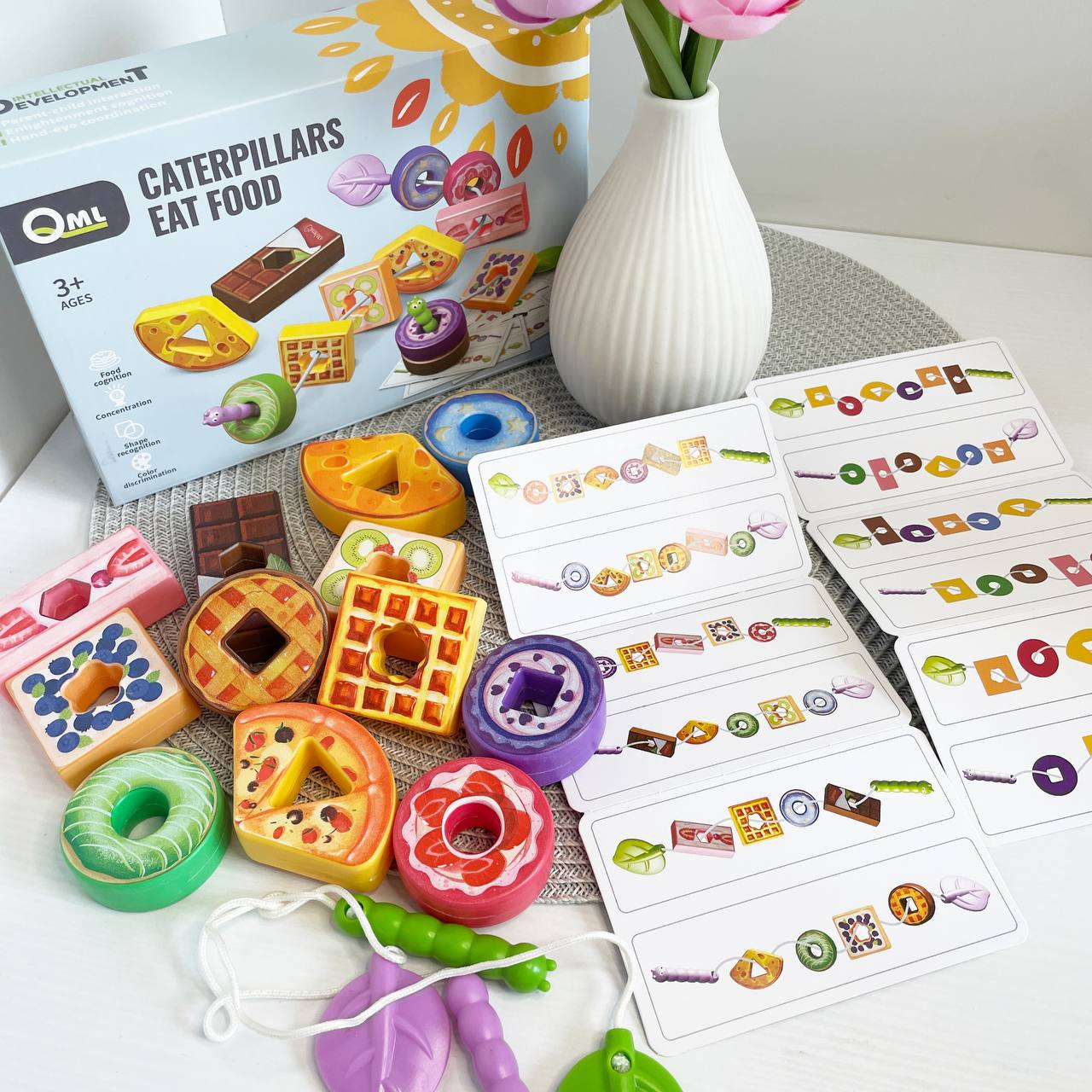 Суть гри неймовірна проста: нанизуй деталі на шнурок та радій разом з гусеничкою!