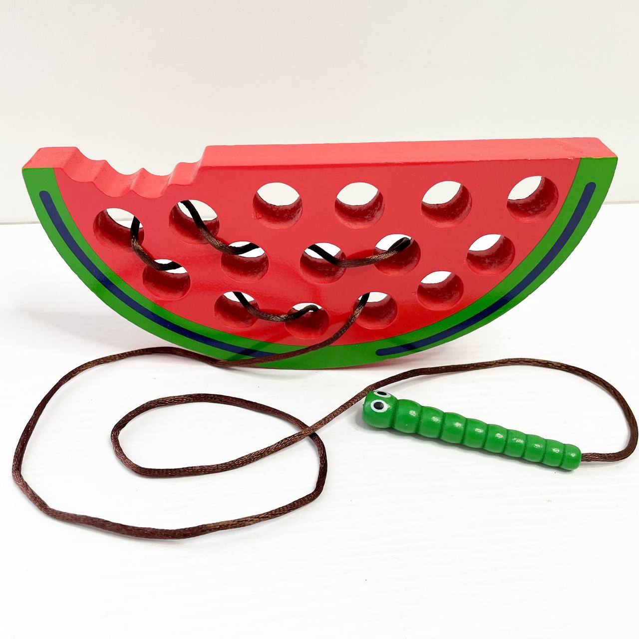 Дерев'яна шнурівка Гусениця в Кавуні (15см)