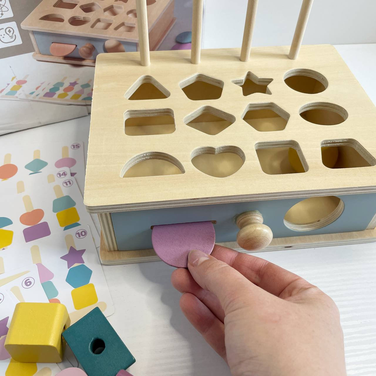 Дитячий дерев'яний сортер-скринька — це універсальна навчальна іграшка, яка об’єднує декілька цікавих ігор в одному наборі. Завдяки своїм різноманітним завданням і яскравому дизайну, вона приверне увагу дитини на тривалий час та подарує безліч приємних емоцій.