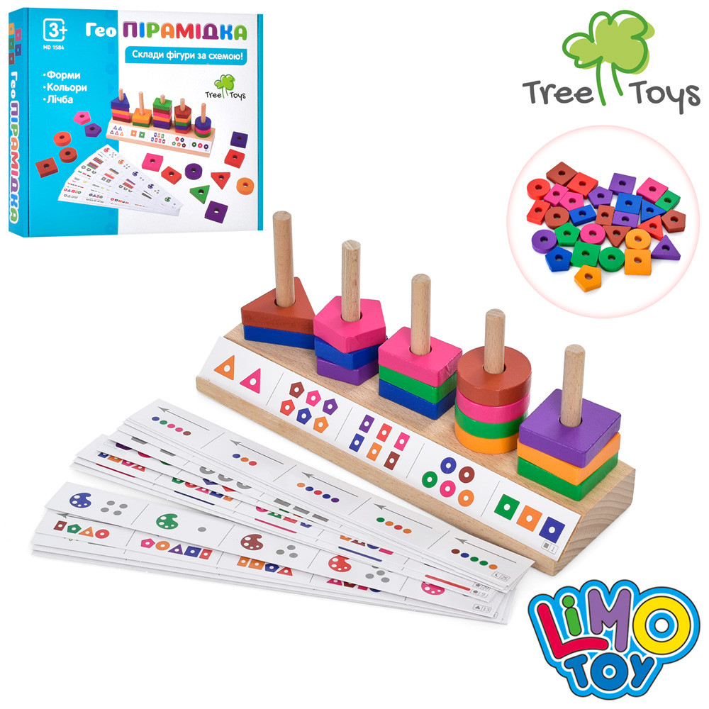 Дерев'яна іграшка Пірамідка MD 1584 геометричні фігури Limo Toy