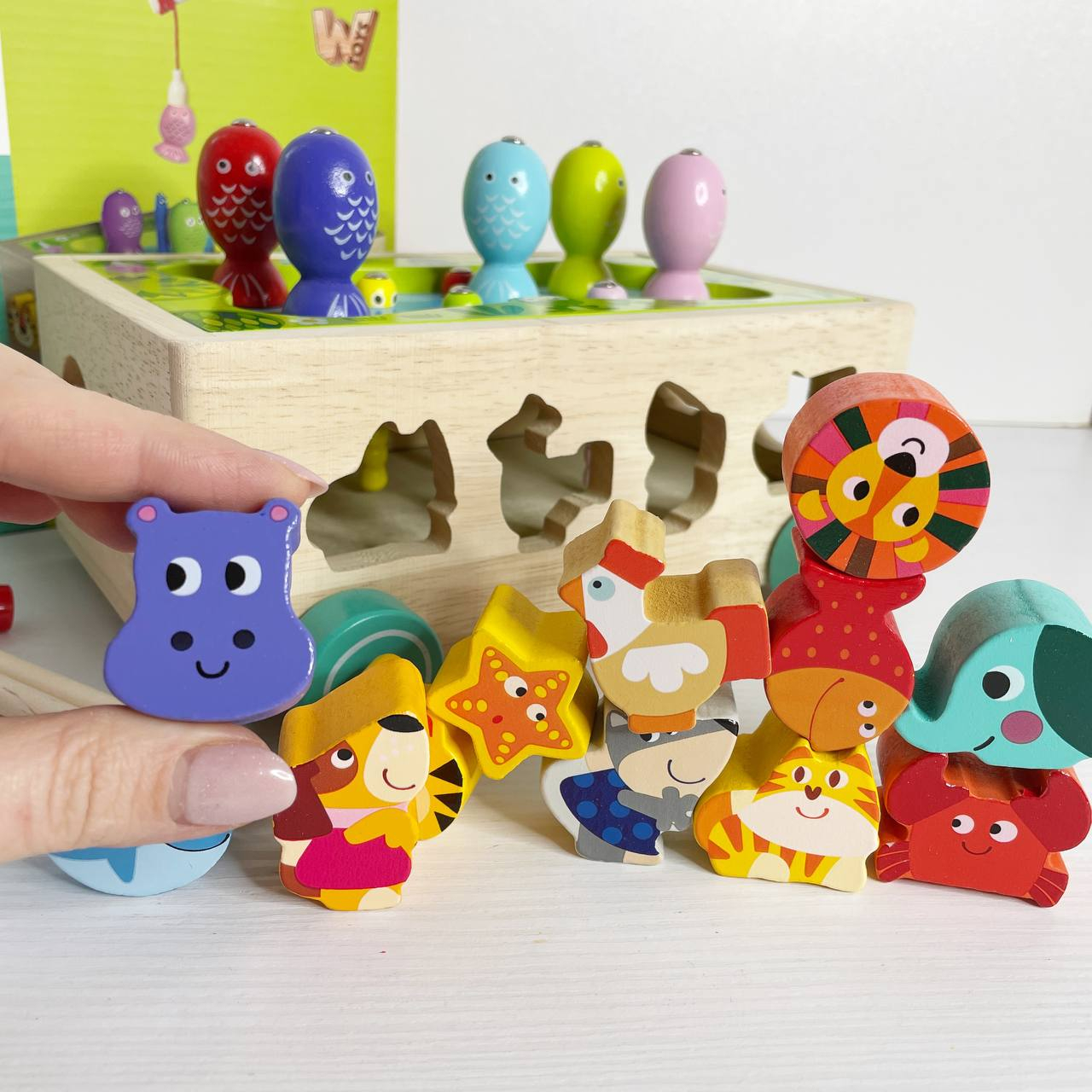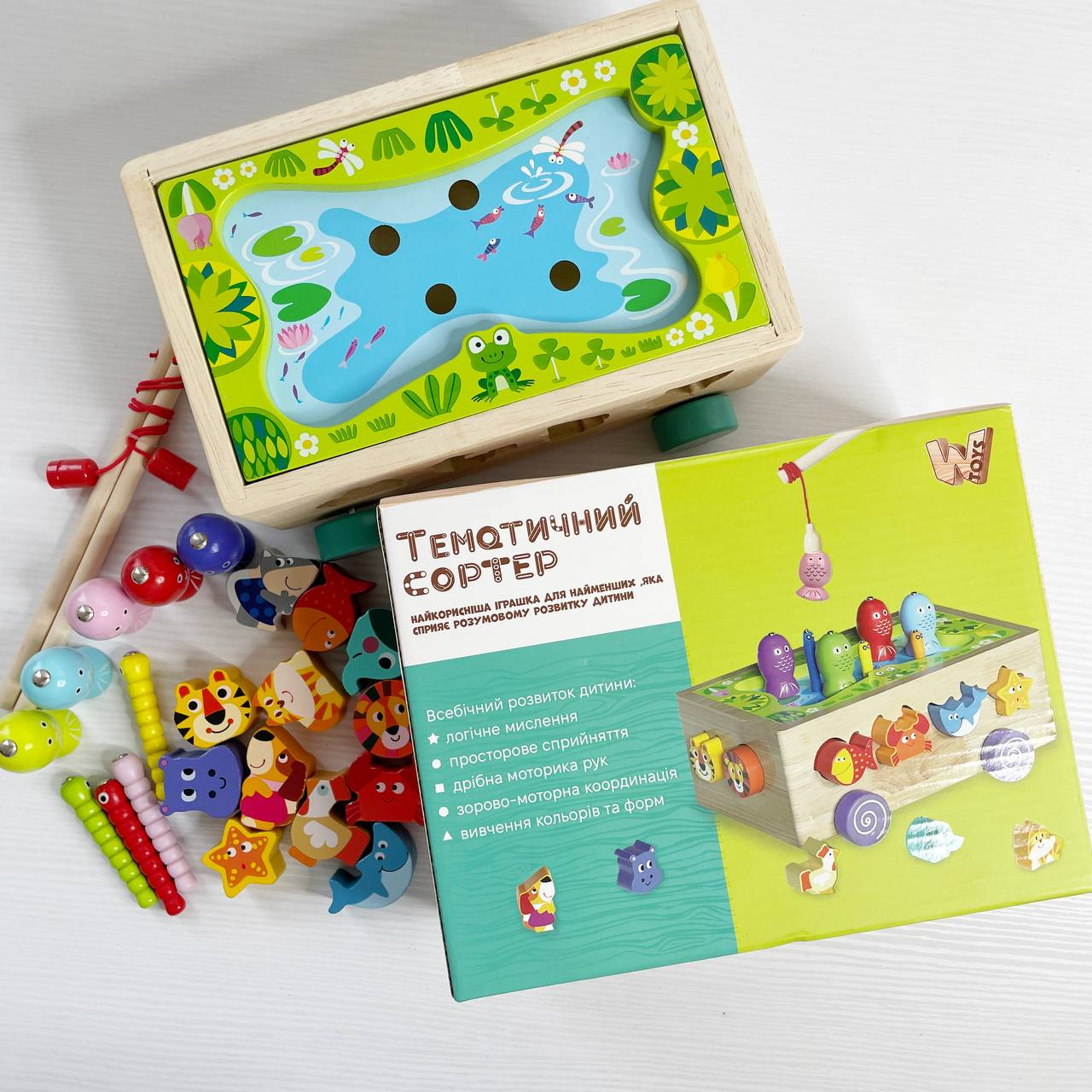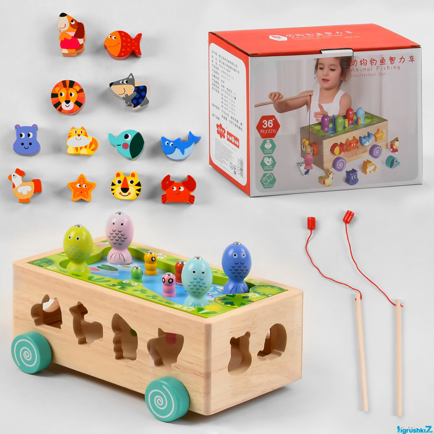 Дерев'яна іграшка сортер - каталка з магнітною риболовлею, C 45220