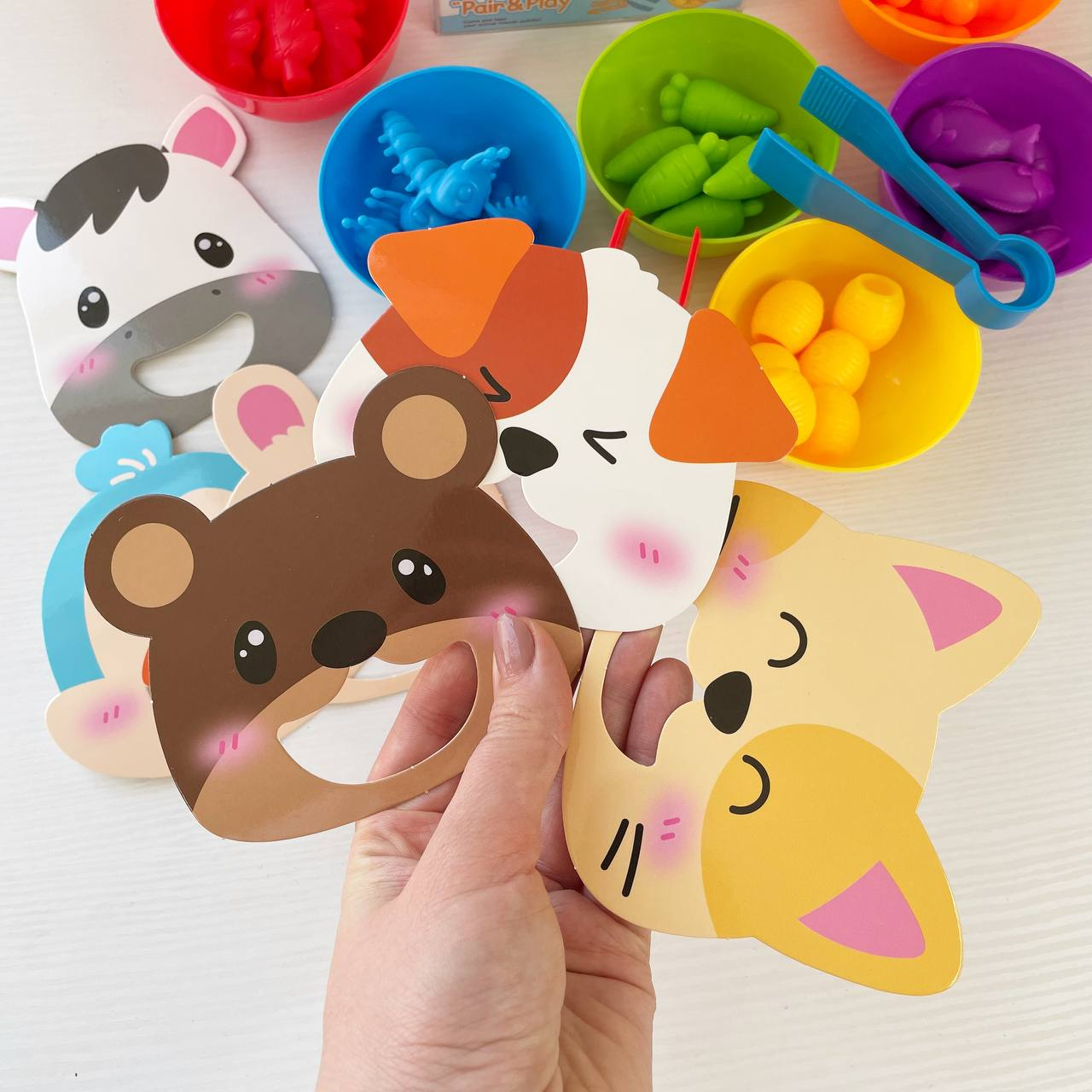 Логічна гра-сортер Нагодуй тваринку, 2 щипці, 6 тарілочок 2188-114