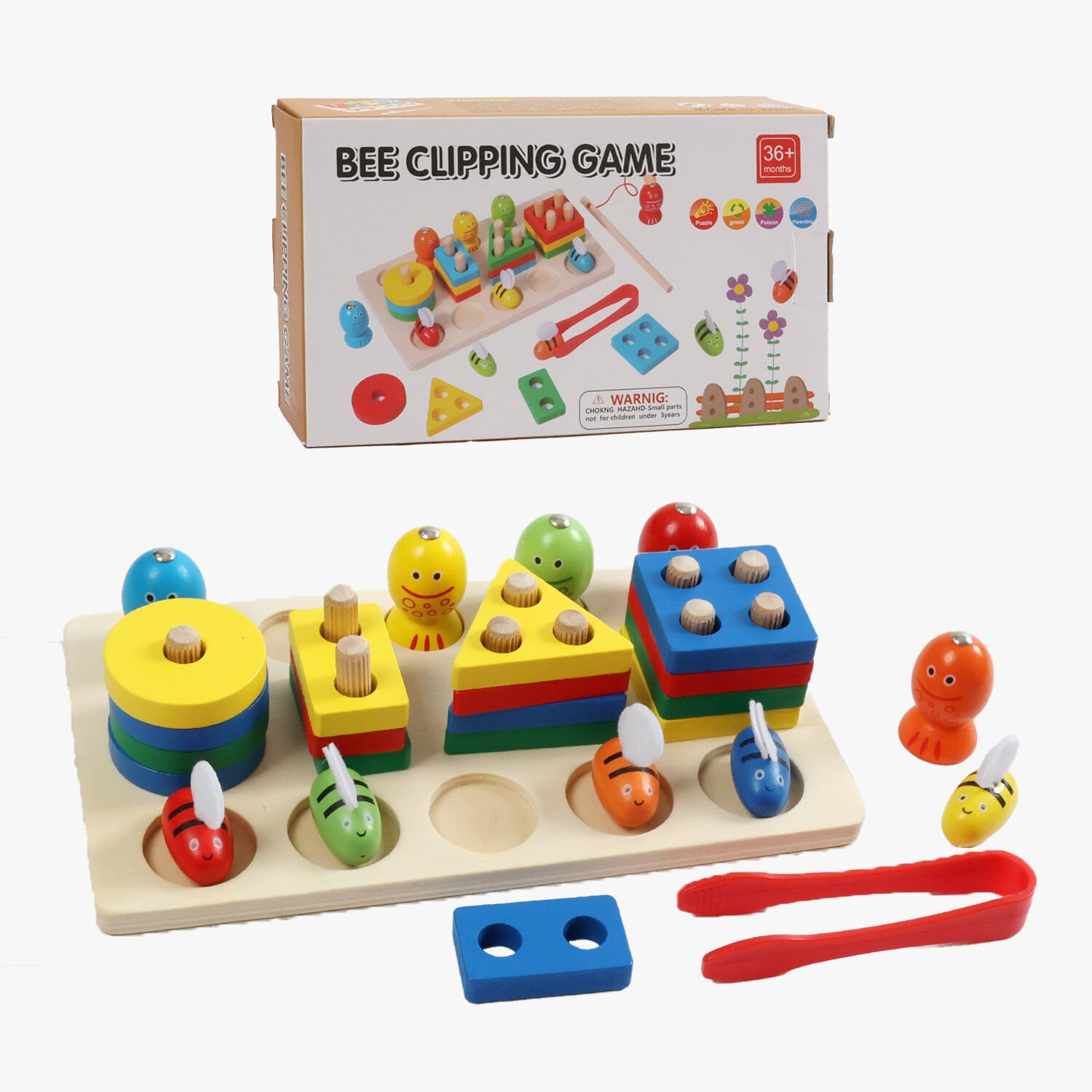 Логічна дерев’яна гра: пірамідка - геометрик, магнітна риболовля, сортер бджілки з пінцетом