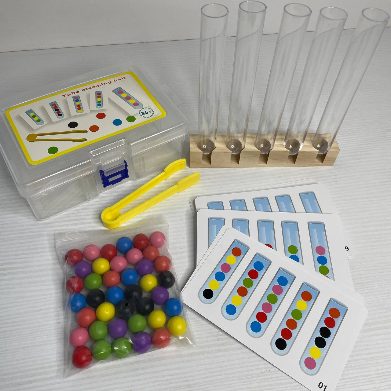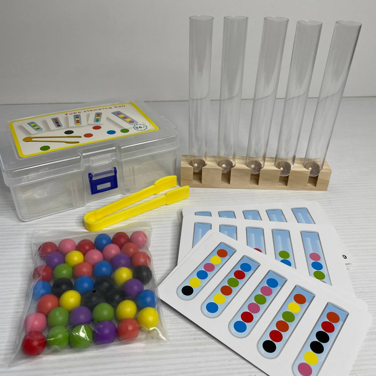 УЦІНКА!!! Дитячий навчальний набір для сортування з картками, кульками, пінцетами