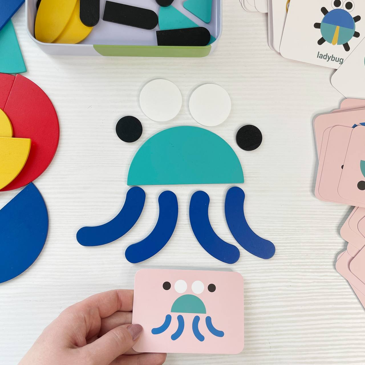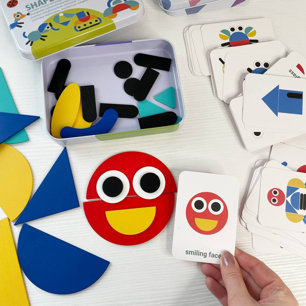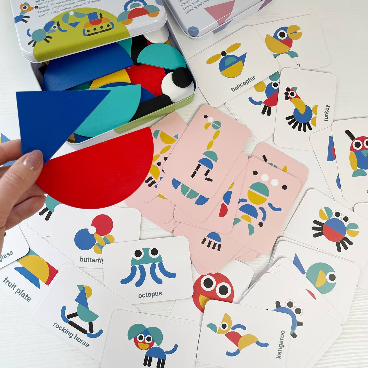 Дерев`яна Мозаїка з геометричними фігурами та картками, 2305-64