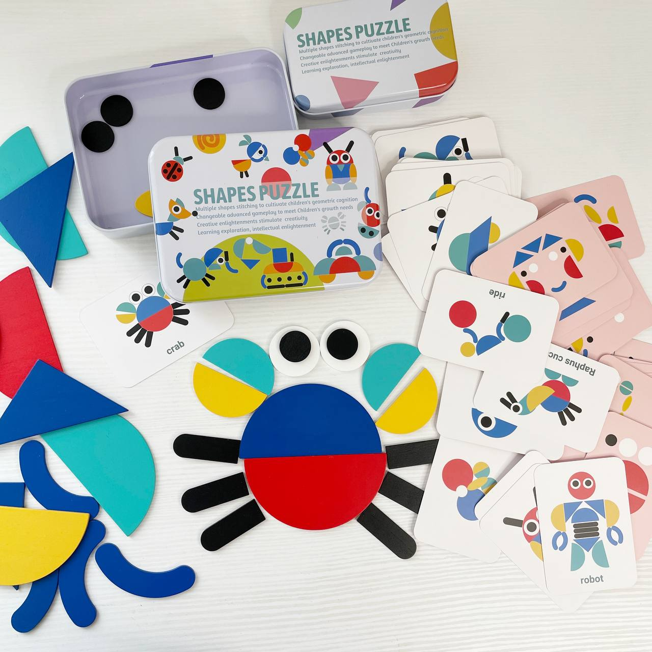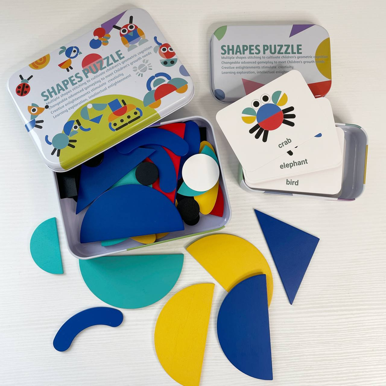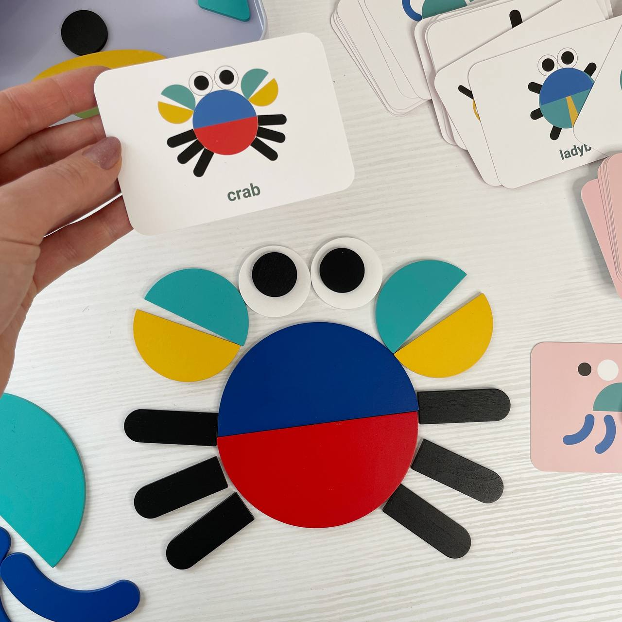 Дерев`яна Мозаїка з геометричними фігурами та картками, 2305-64
