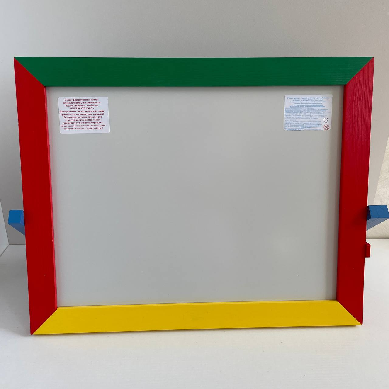 Дошка для малювання виготовлена з натурального дерева в Україні та забарвлена європейськими фарбами на водній основі. Вона займає дуже мало місця та підійде навіть для маленьких квартир. Проста та надійна конструкція цієї іграшки буде довгі роки служити дитині, а яскравий та веселий дизайн не тільки чудово впишеться в інтер'єр дитячої кімнати, але й прикрасить її. Якість перевірено 20-річним досвідом виробництва.