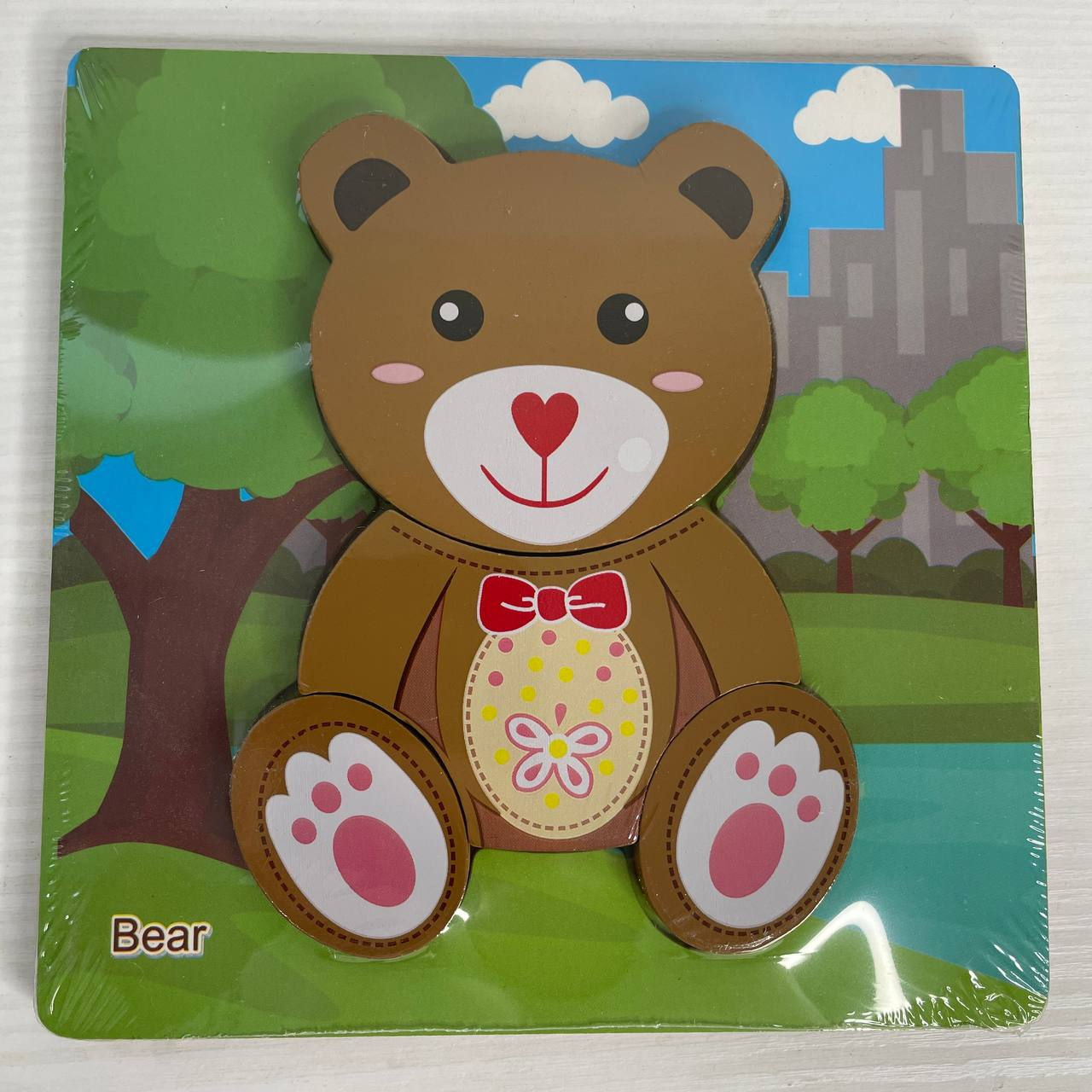 Об'ємний дерев'яний пазл, рамка - вкладка Ведмедик