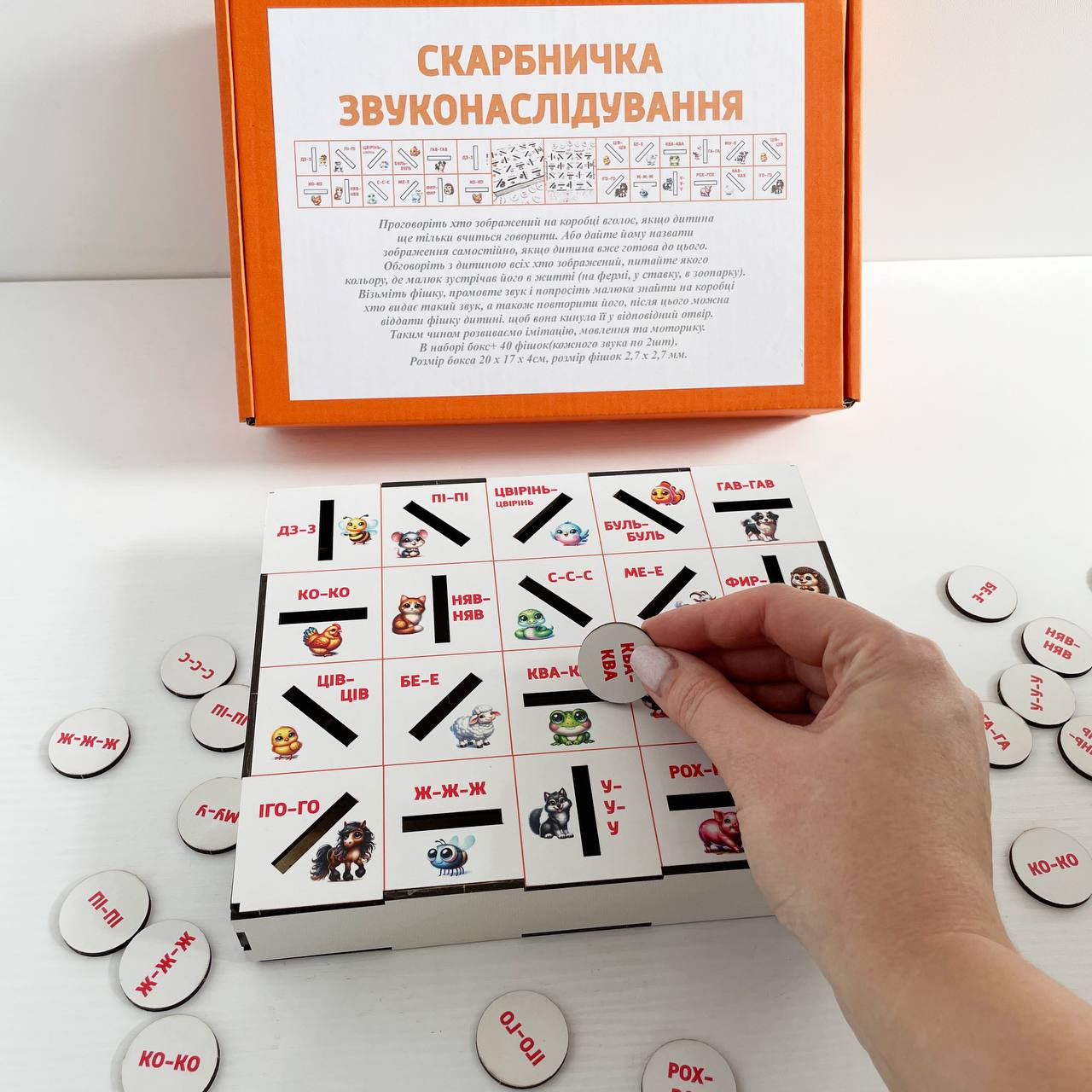 Дерев'яна логопедична гра Скарбничка звуконаслідування