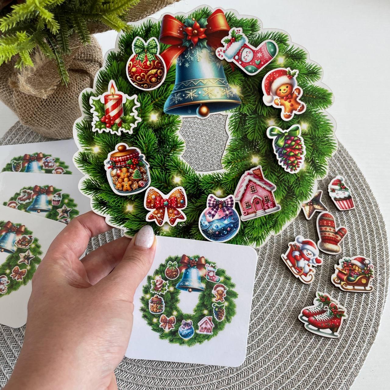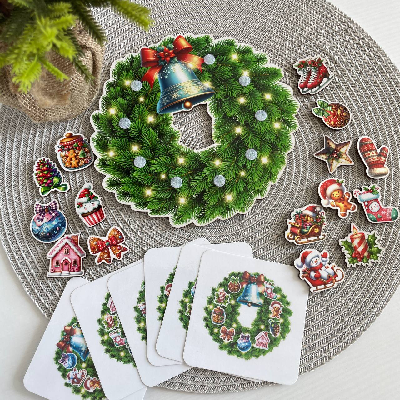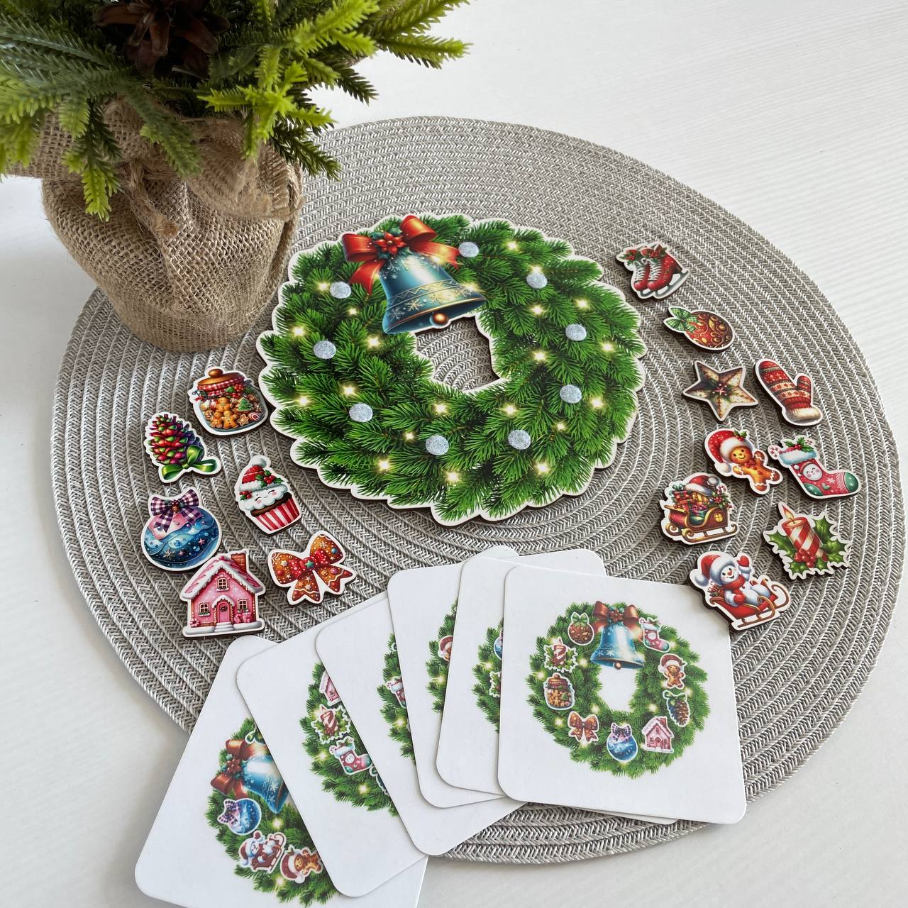 Дерев'яна гра Новорічний вінок на липучках (збираємо за зразком) SP