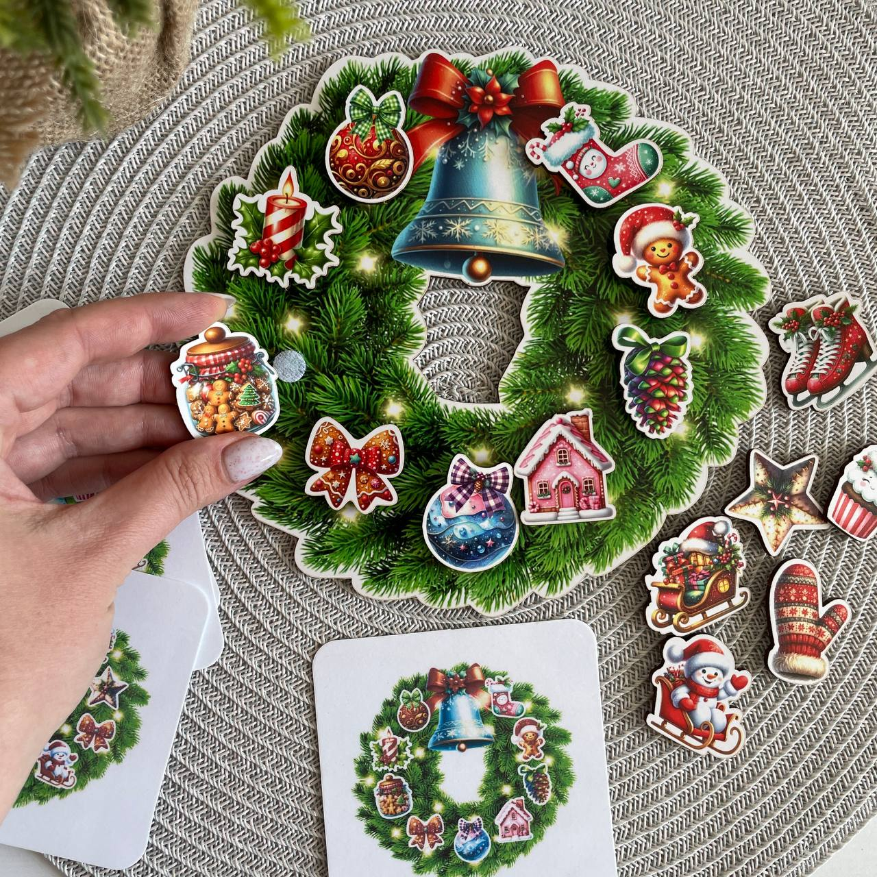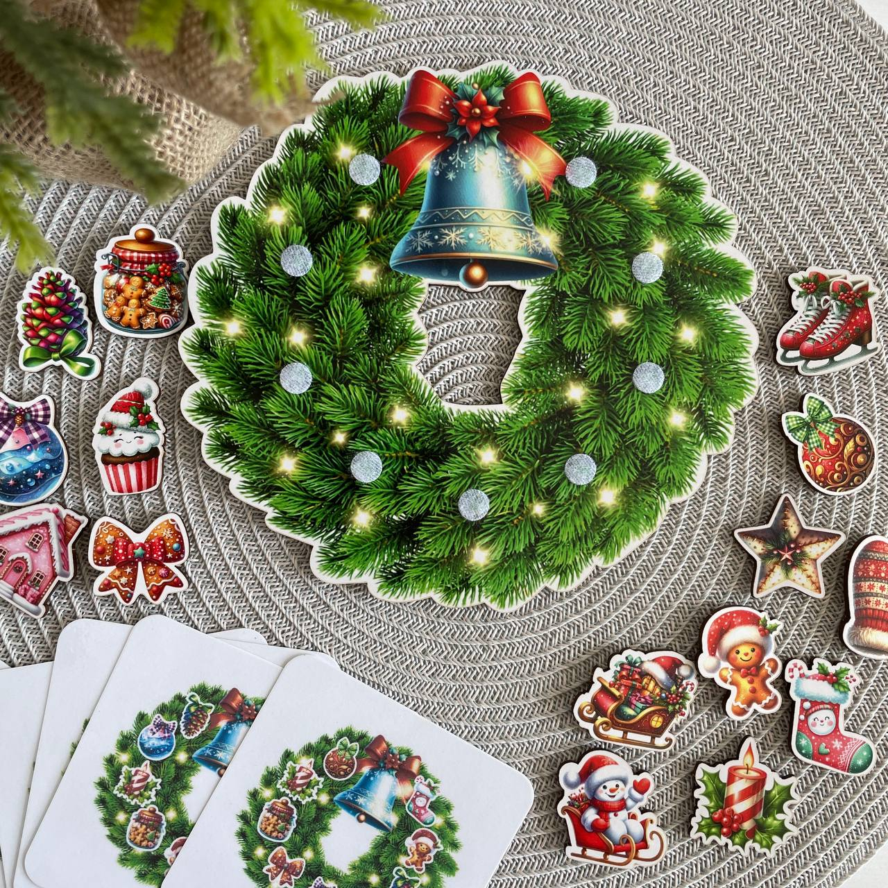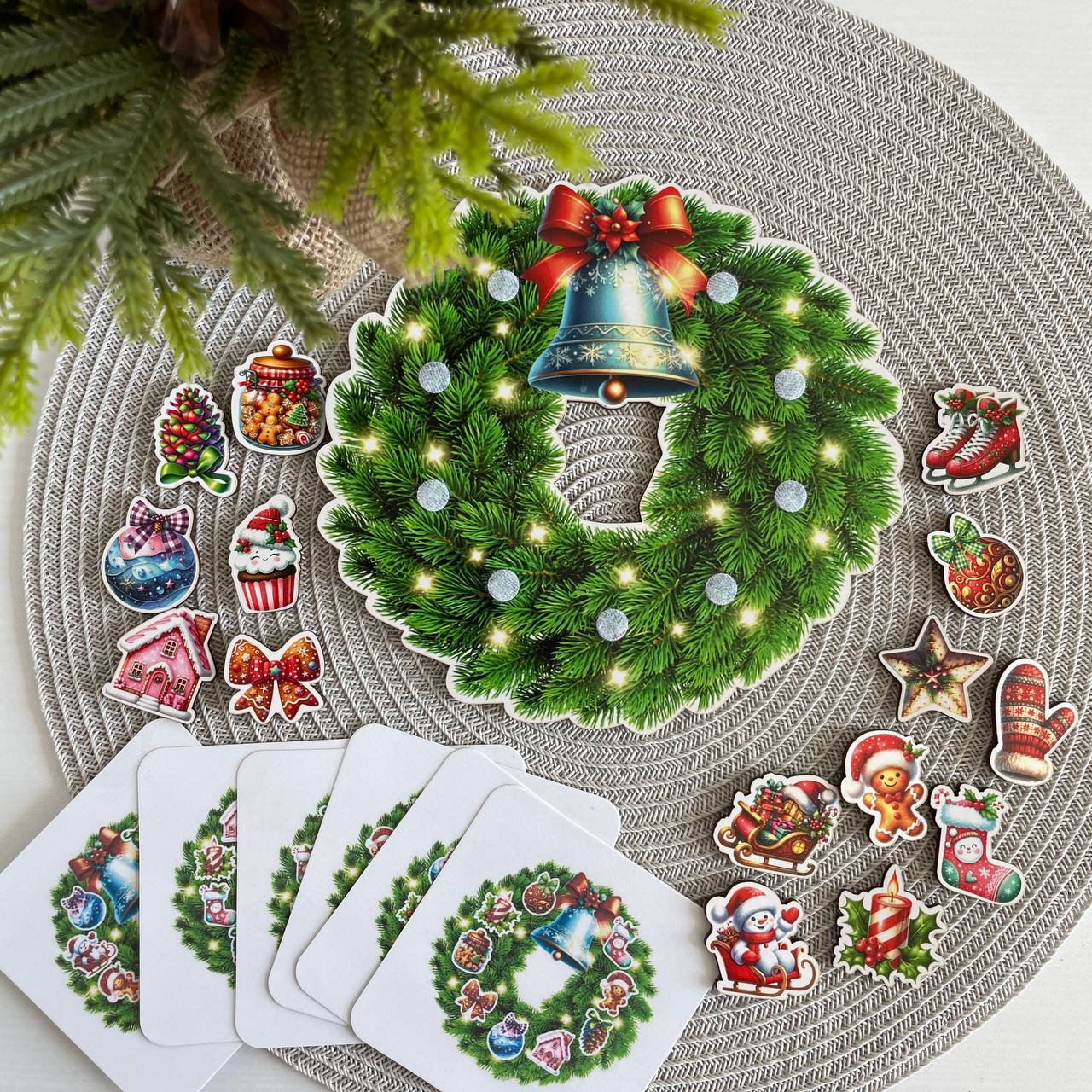 Дерев'яна гра Новорічний вінок на липучках (збираємо за зразком) SP