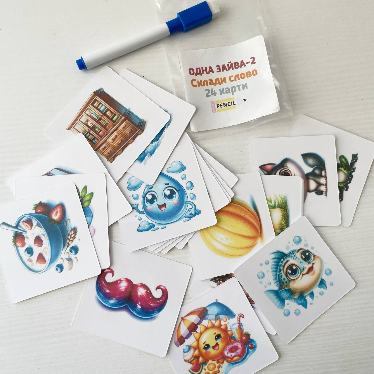 В наборі 24 картки+маркер