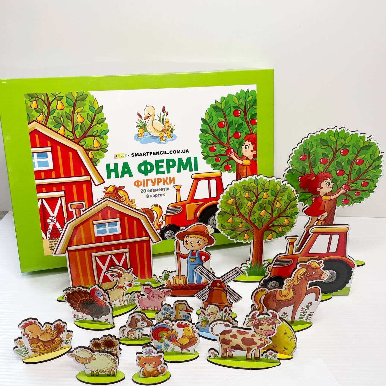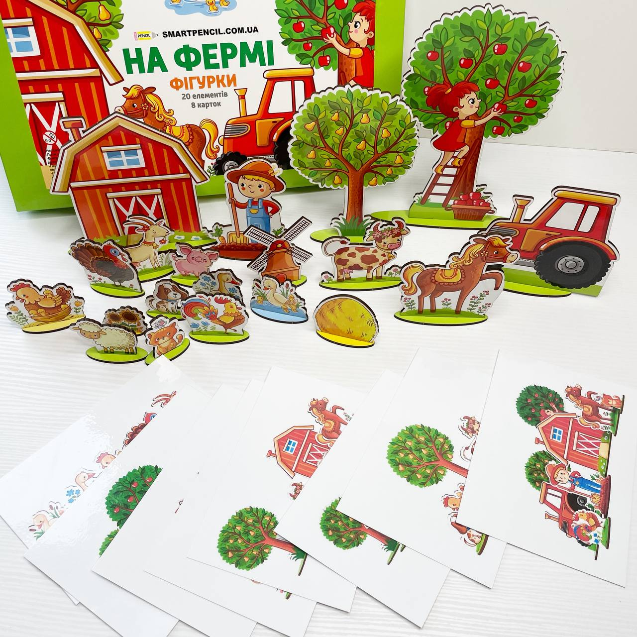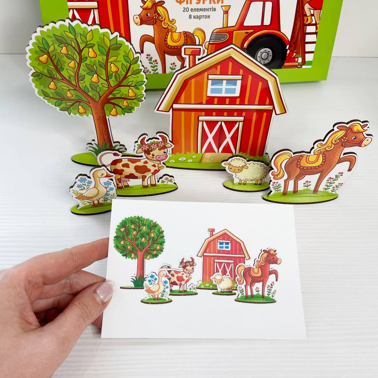 Дерев'яна гра На фермі на розвиток просторового мислення з фігурками та картками завданнями SP
