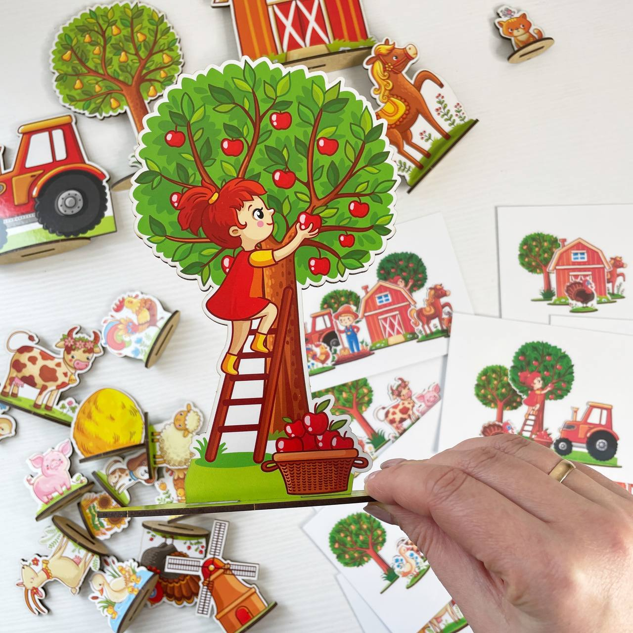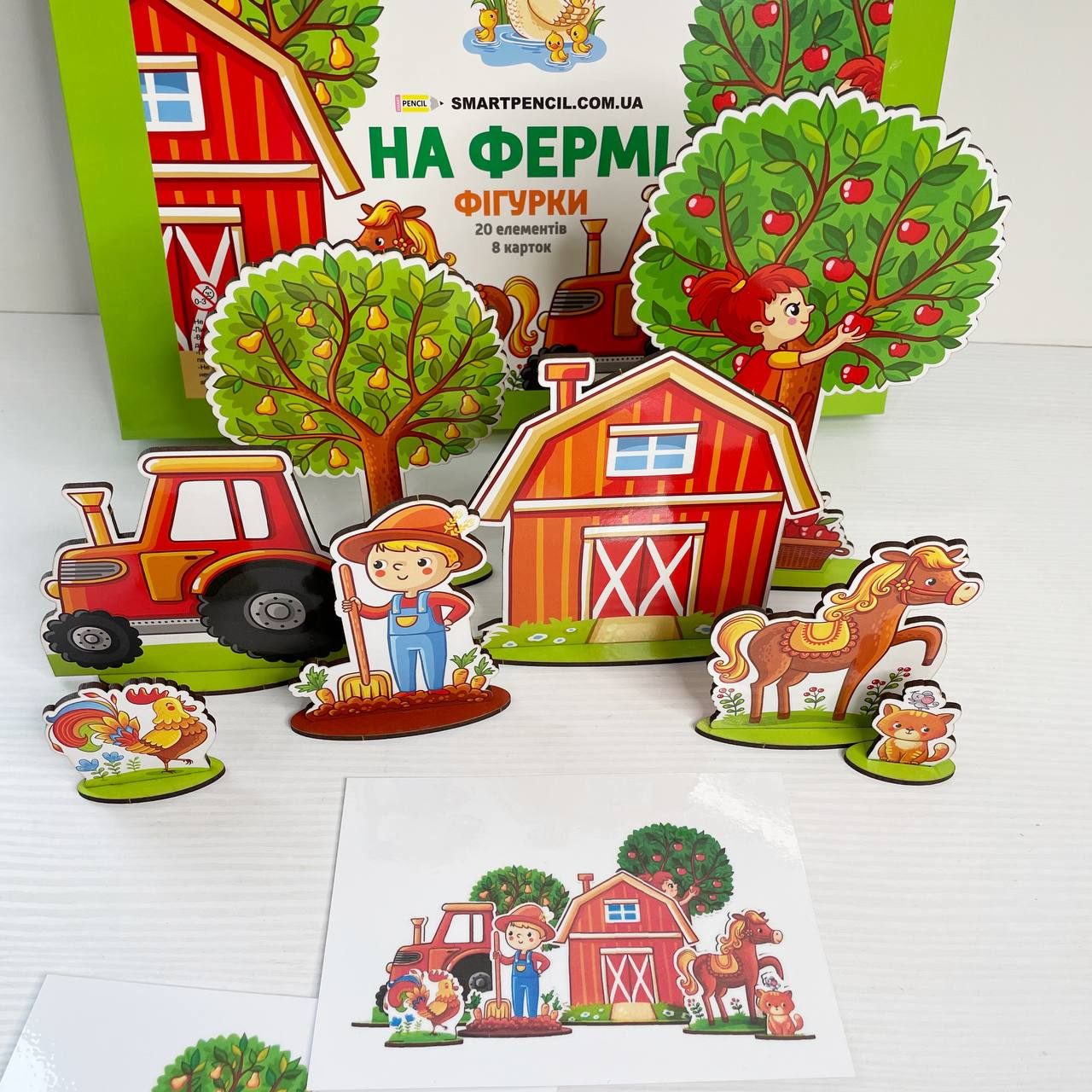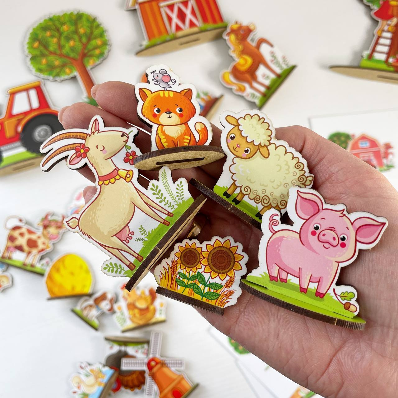 Дерев'яна гра На фермі на розвиток просторового мислення з фігурками та картками завданнями SP