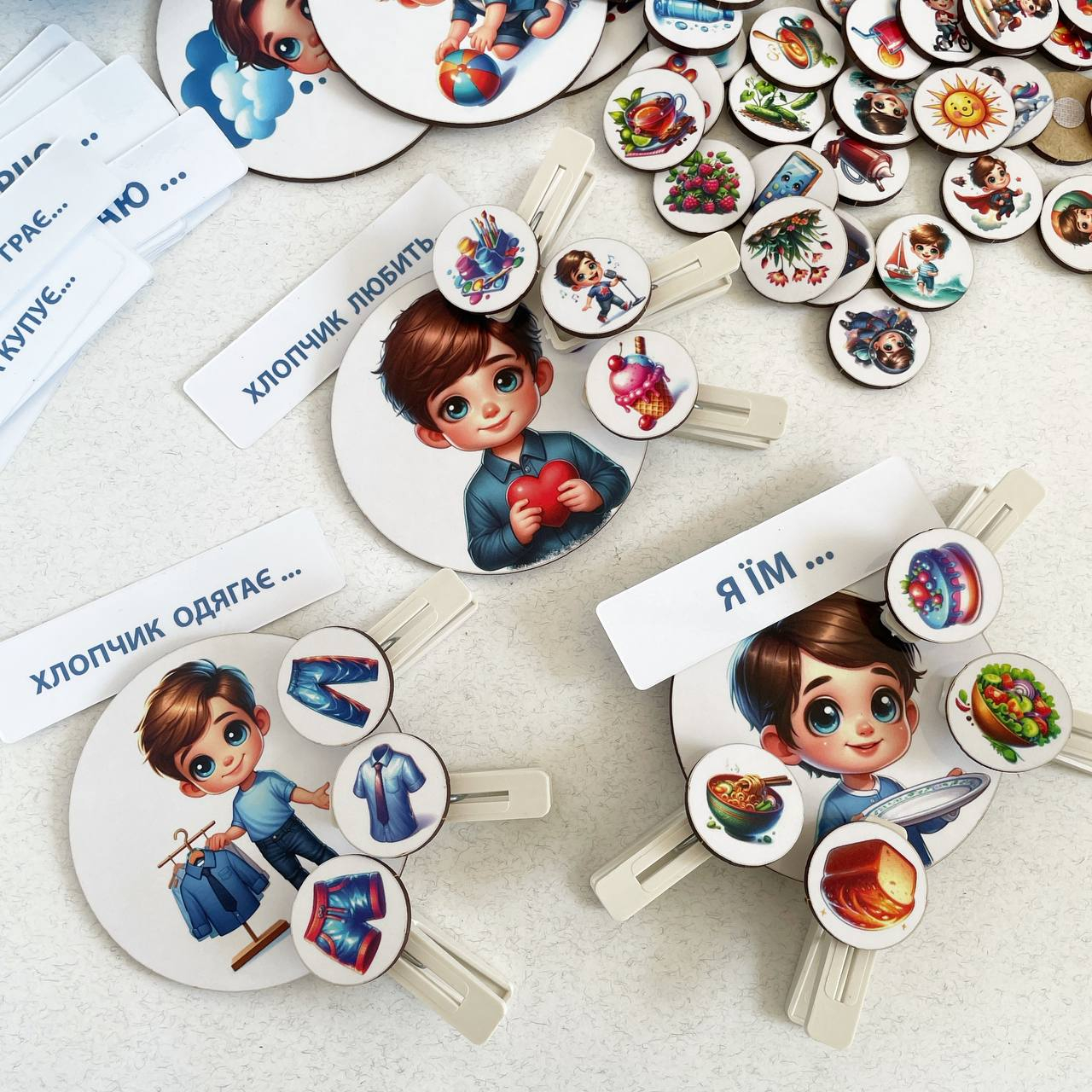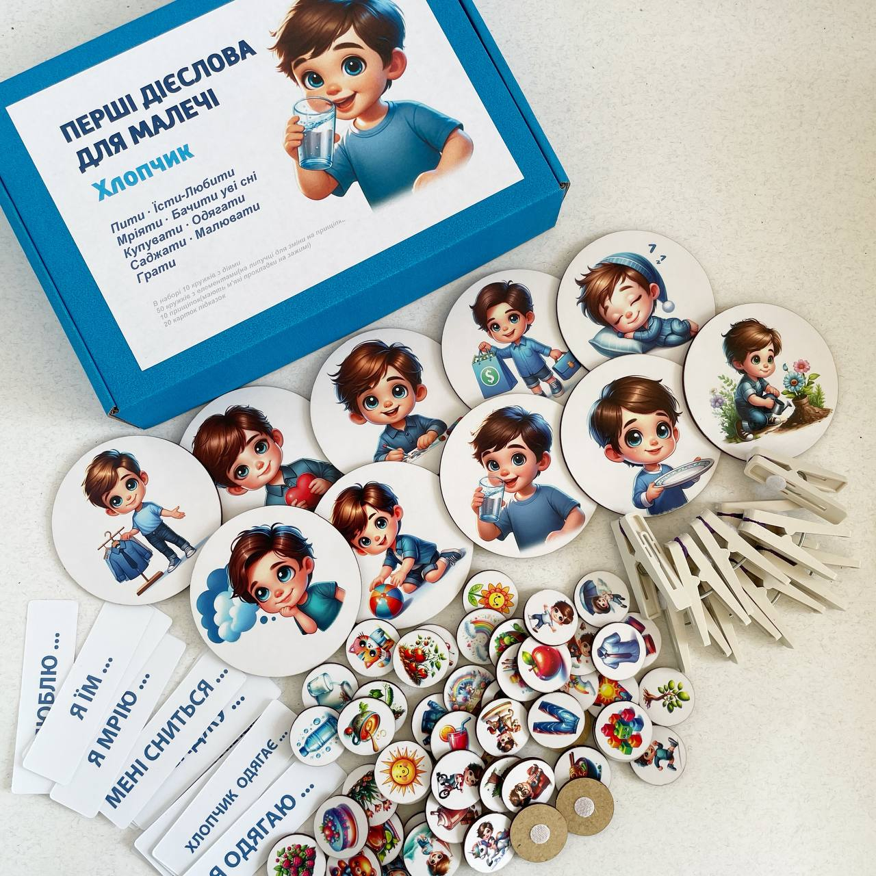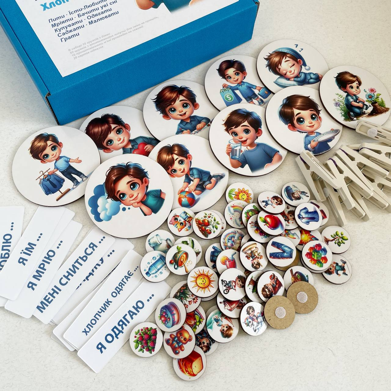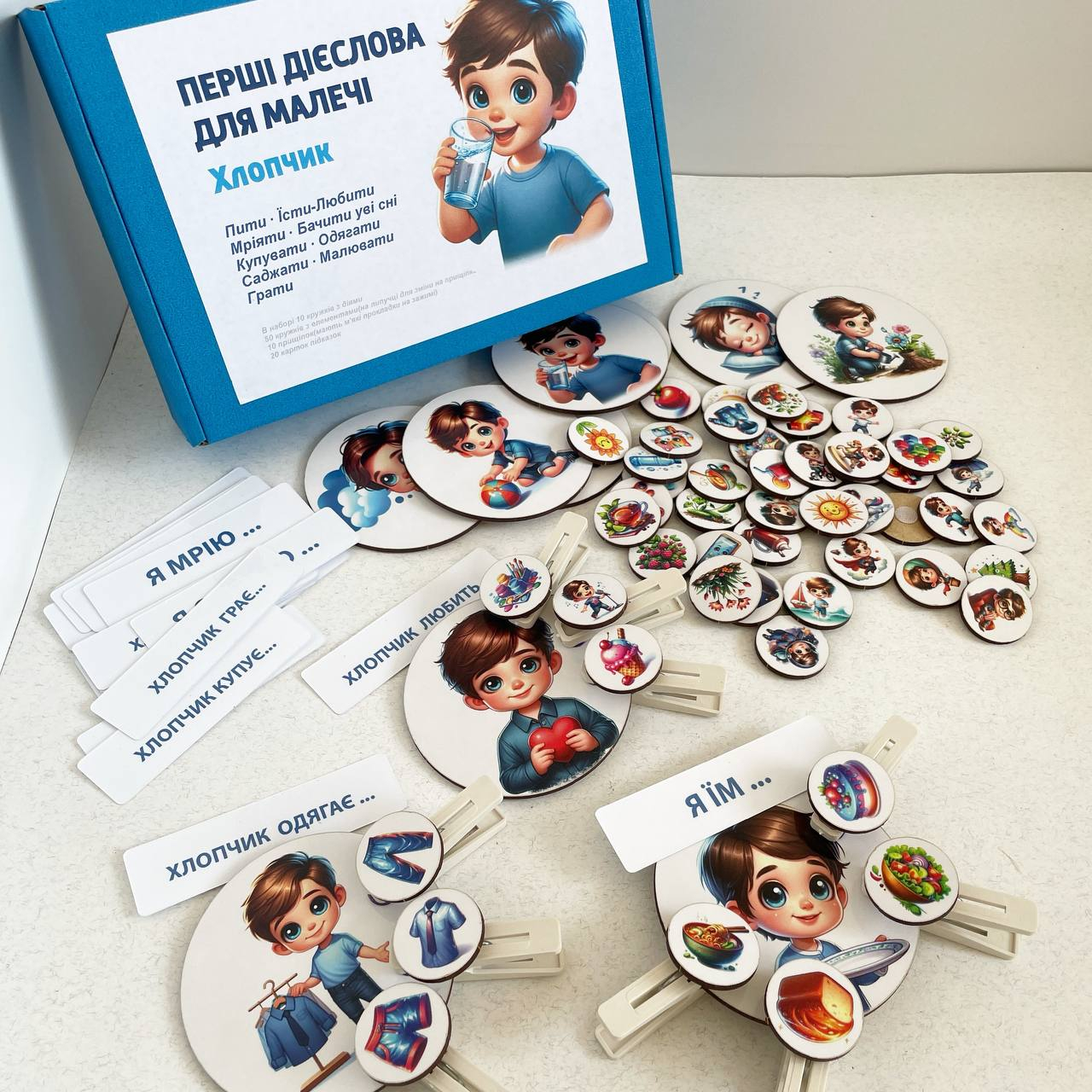 Навчальна дерев'яна гра Перші дієслова для малечі (Хлопчик) SP