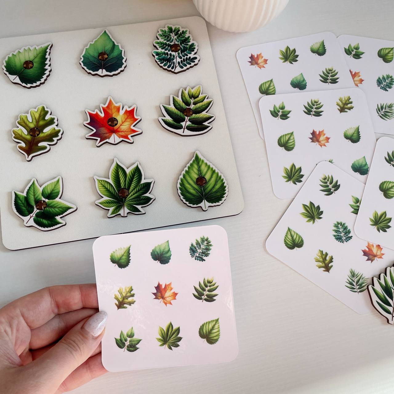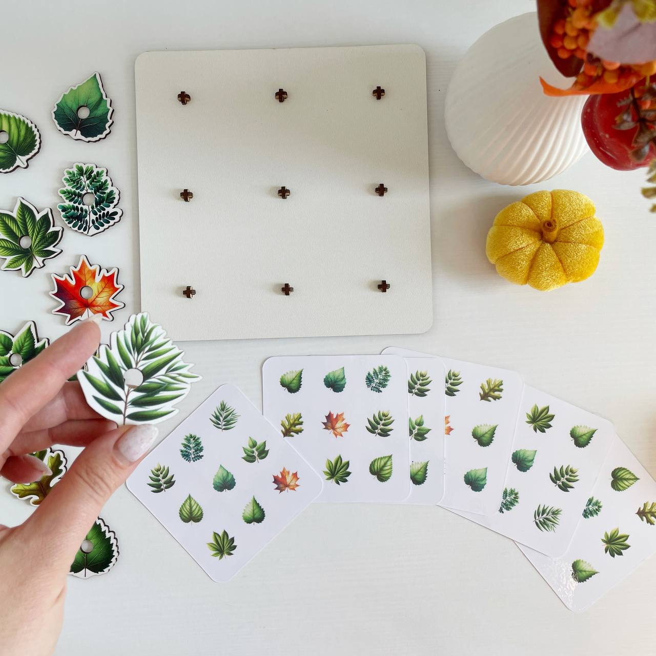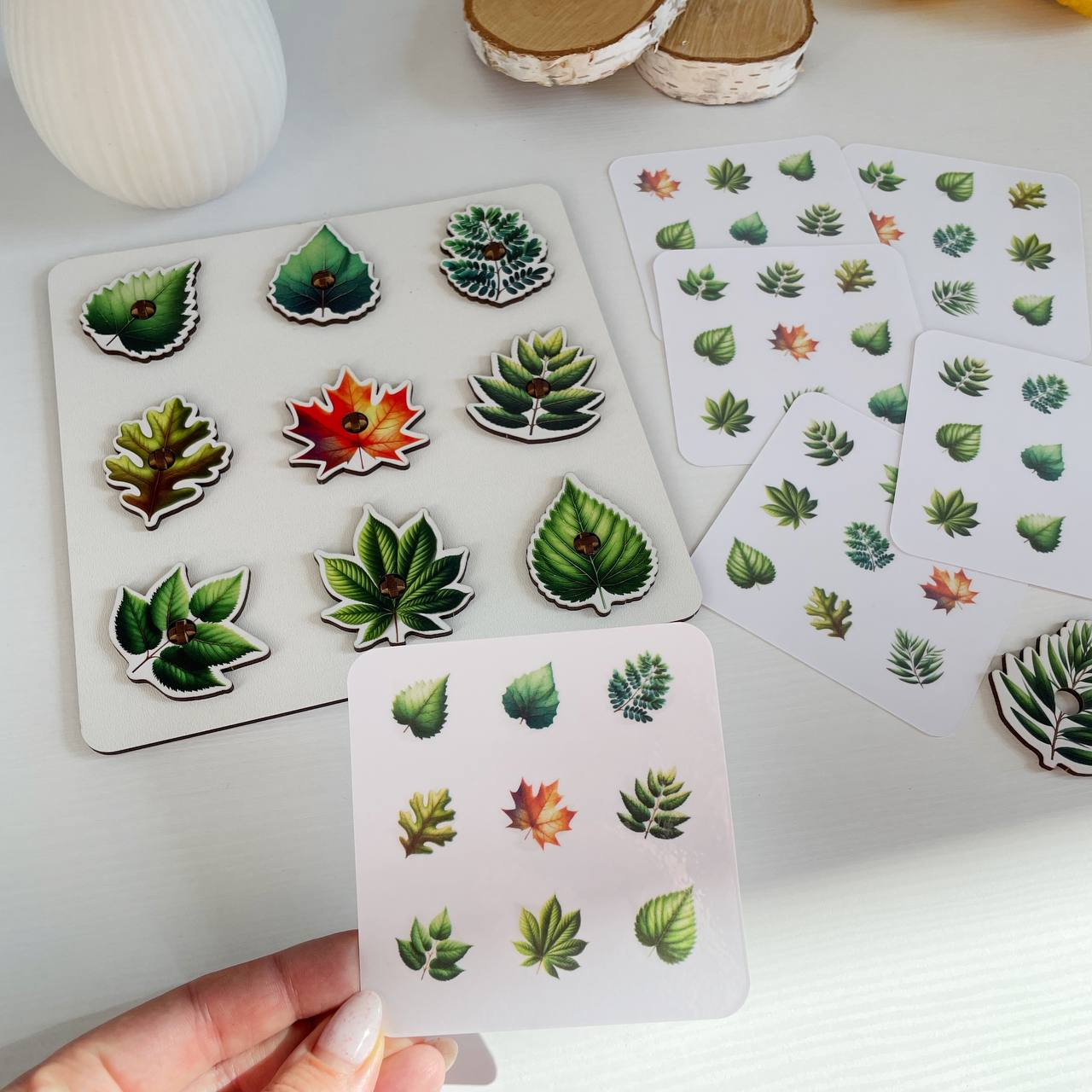 Дерев'яна гра-сортер з картками-завданнями Поляна з листочків SP