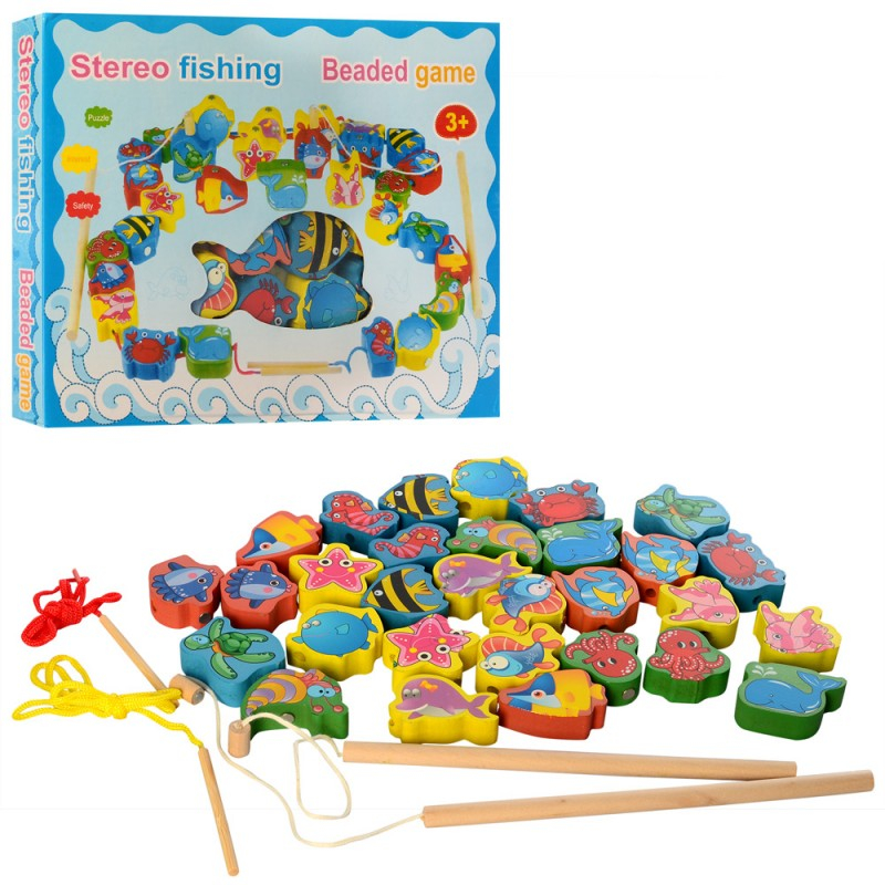 Деревяна іграшка Магнітна рибалка та шнурівка "Підводний світ"