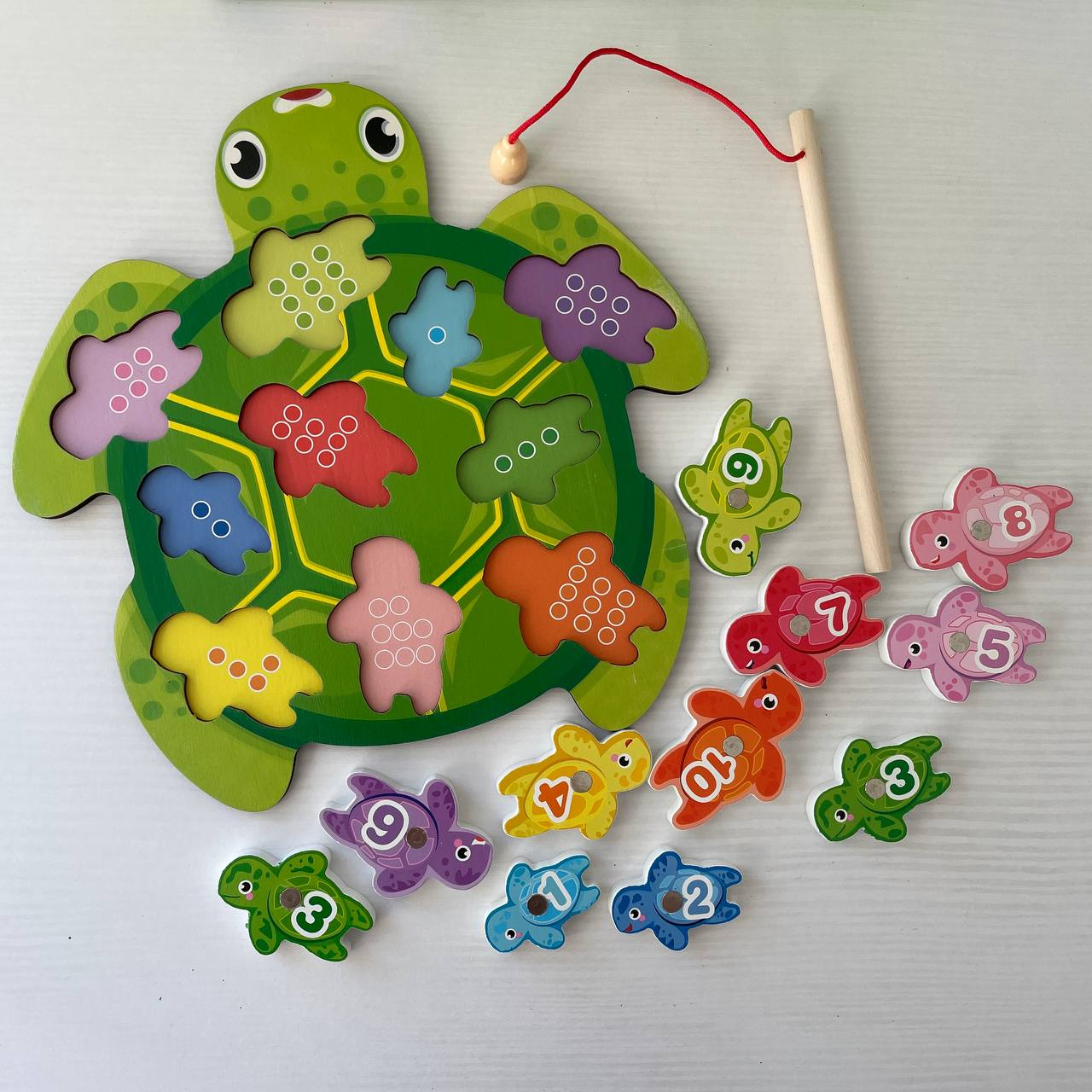 Дерев'яна рамка - вкладка з набором для сортування Магнітна риболовля Черепаха