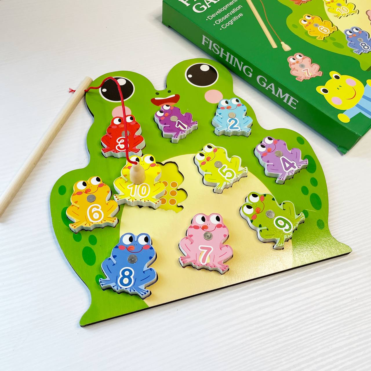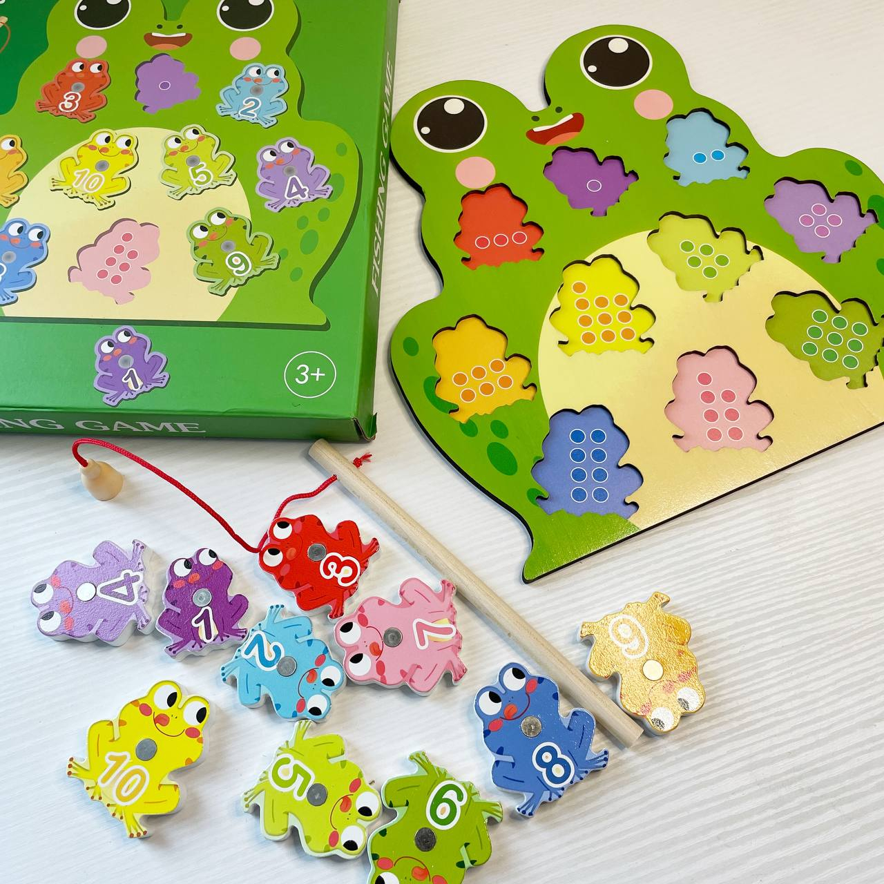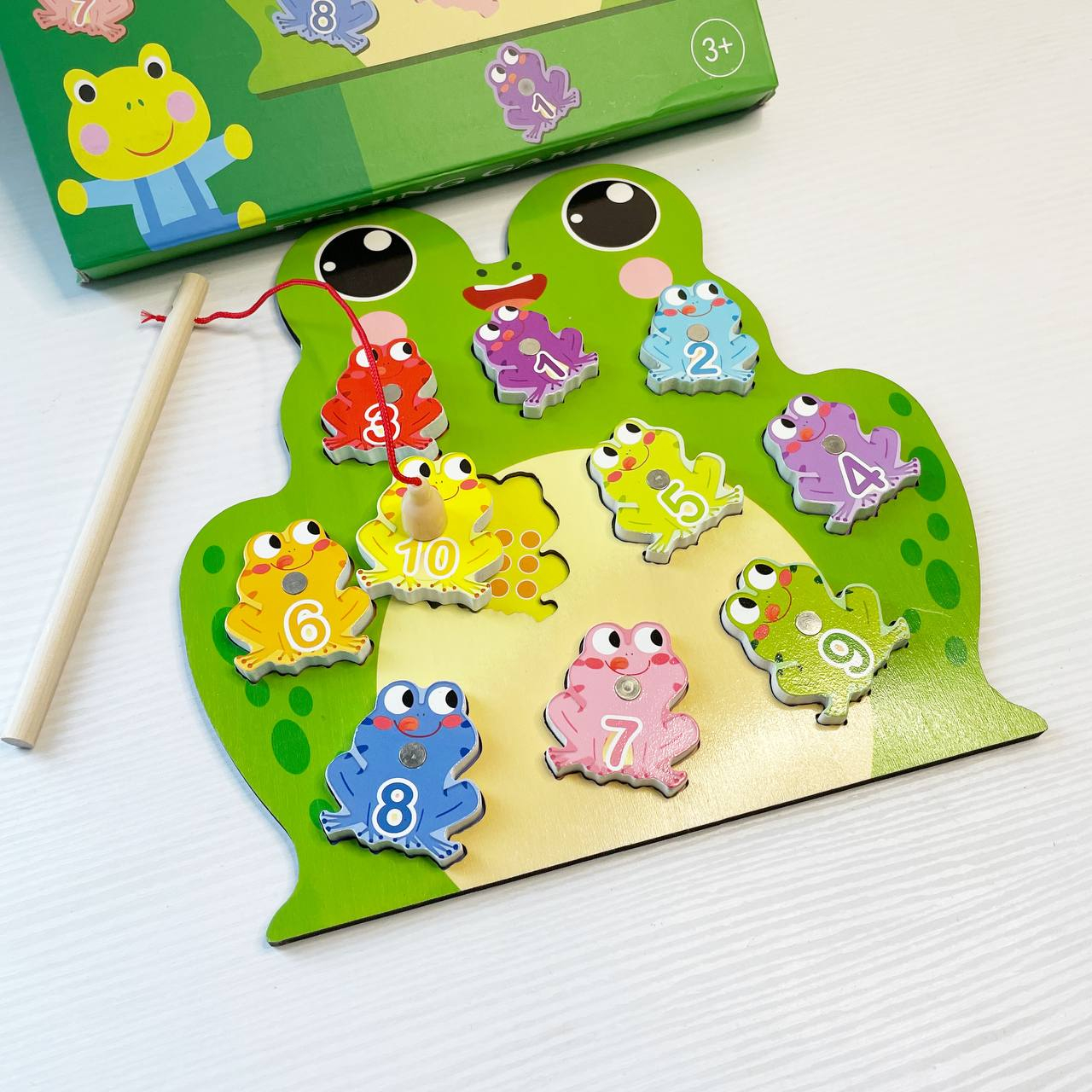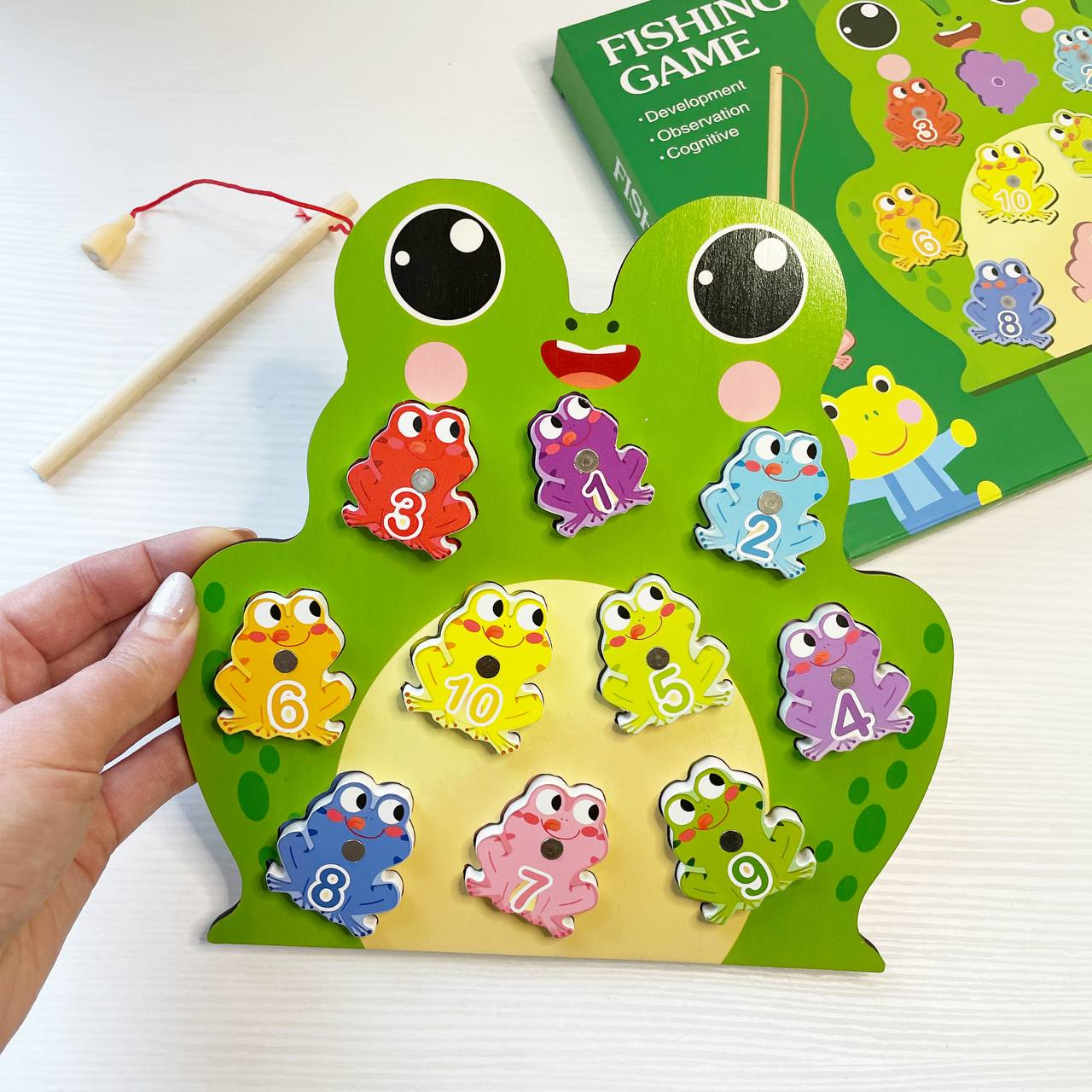 Дерев'яна рамка - вкладка з набором для сортування Магнітна риболовля Жаба