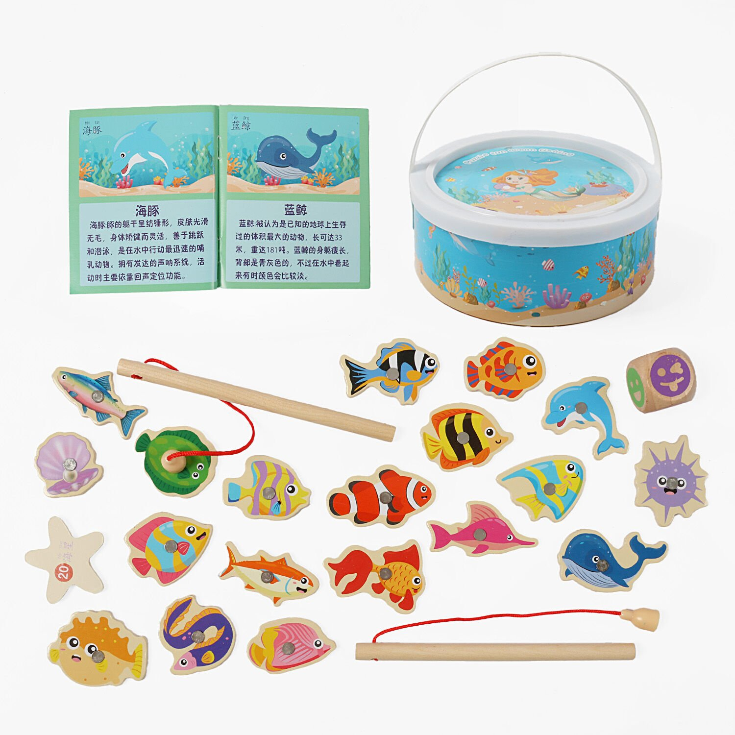 Магнітна риболовля у відрі дерев`яна, 20 фігурок, кубик, 2 вудочки, C 74147
