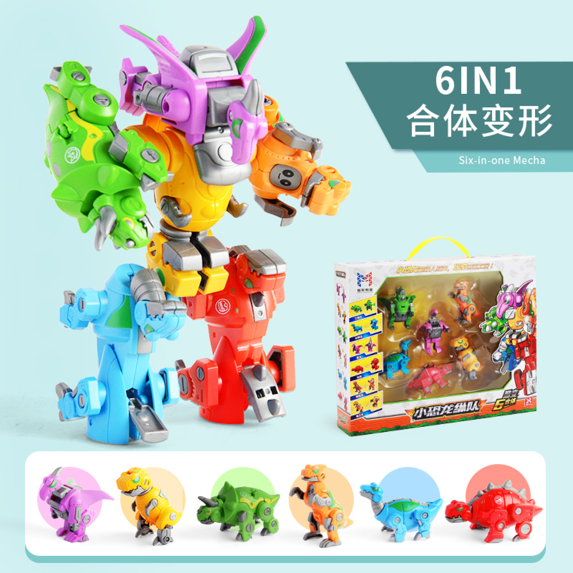 Набір "Динозаври-трансформери 6-в-1" — це унікальний комплект іграшок, який захоплює своїм інноваційним дизайном та можливостями. Він включає шість різних фігурок динозаврів, які не лише вражають деталізацією, але й здатні трансформуватися, об'єднуючись у великого, потужного робота. Ця особливість робить набір дійсно захопливим для юних любителів пригод.