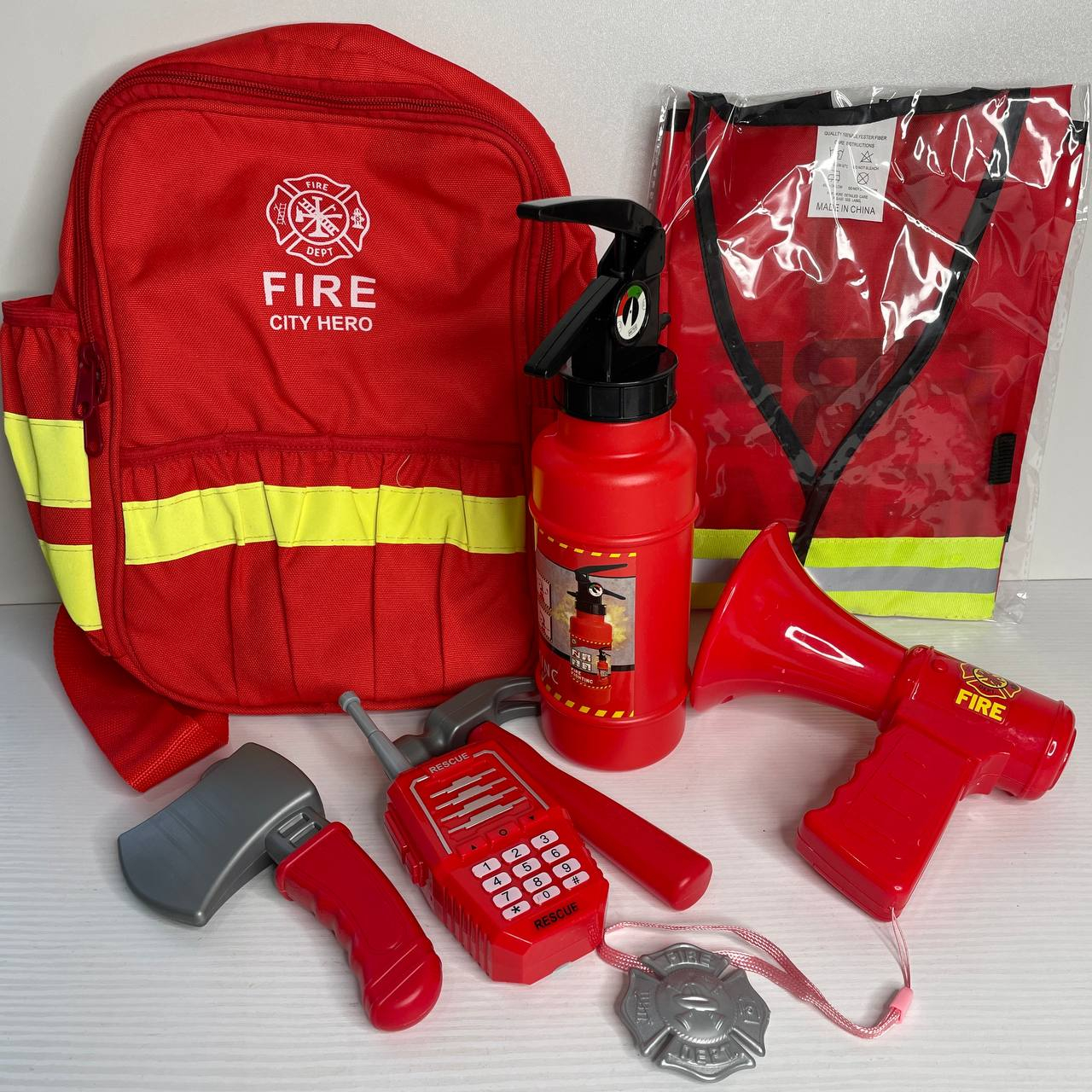 Іграшковий набір пожежника на батарейках, звук, пожежний жилет, рація, пожежний вогнегасник, аксесуари, в сітці 12 F 3