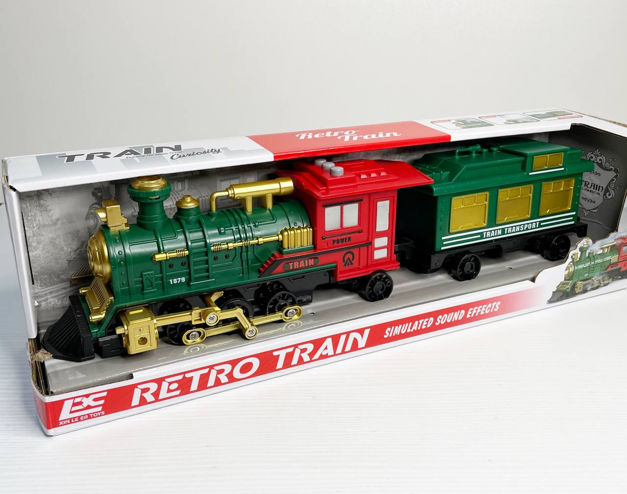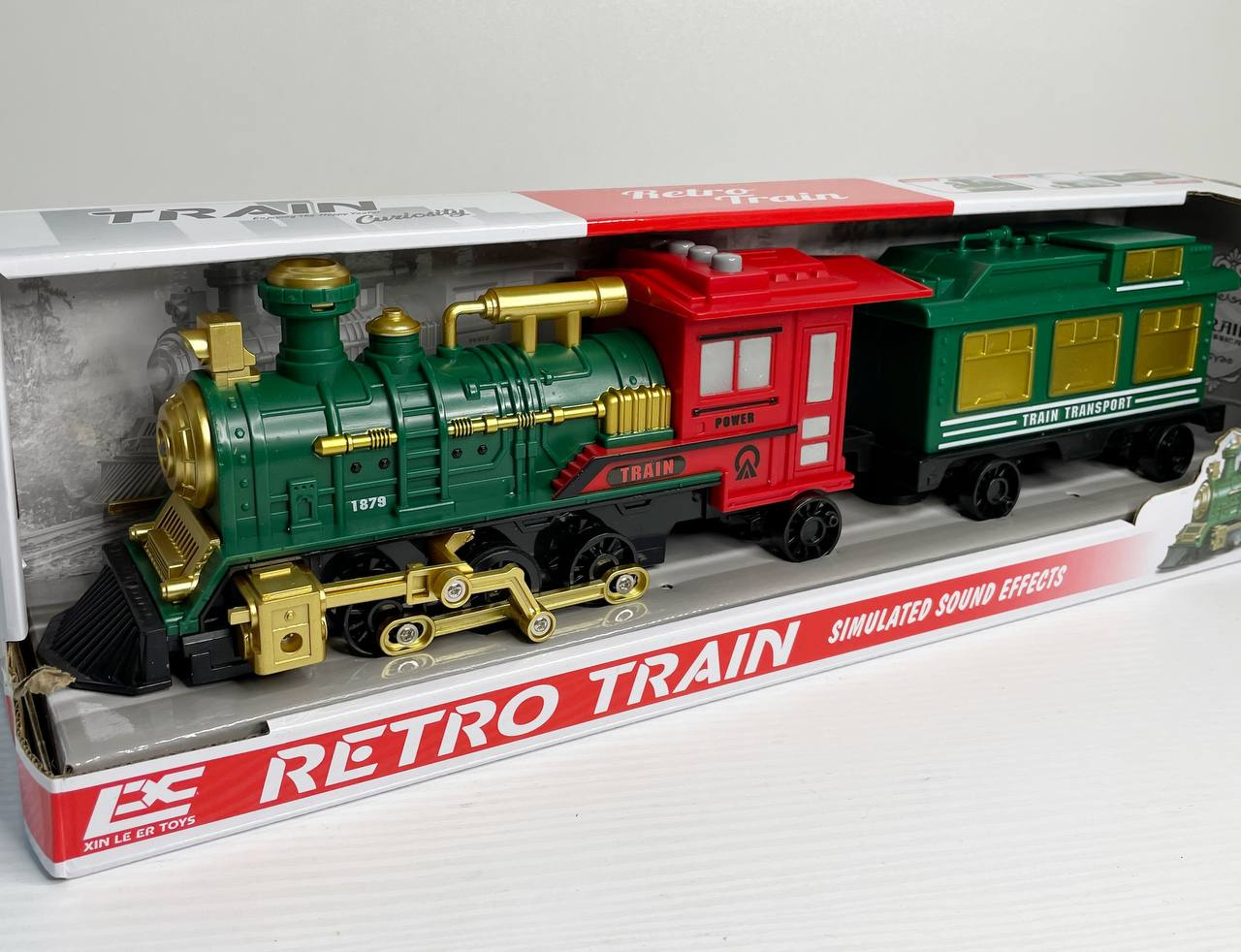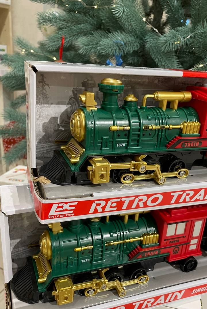 Паровоз довжиною 43 см, парогенерація, звуки, інерція, підсвічування, на батарейках, 1 вагон, 2183
