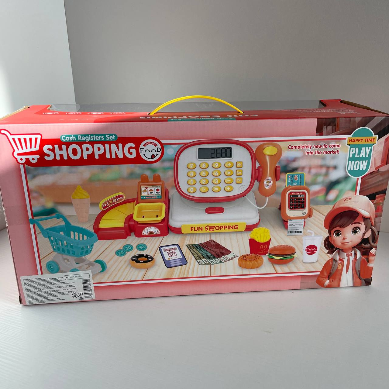 Дитячий касовий апарат з світловими-звуковими ефектами, сканером, муляжі продуктів, міні-візочок, 997-26