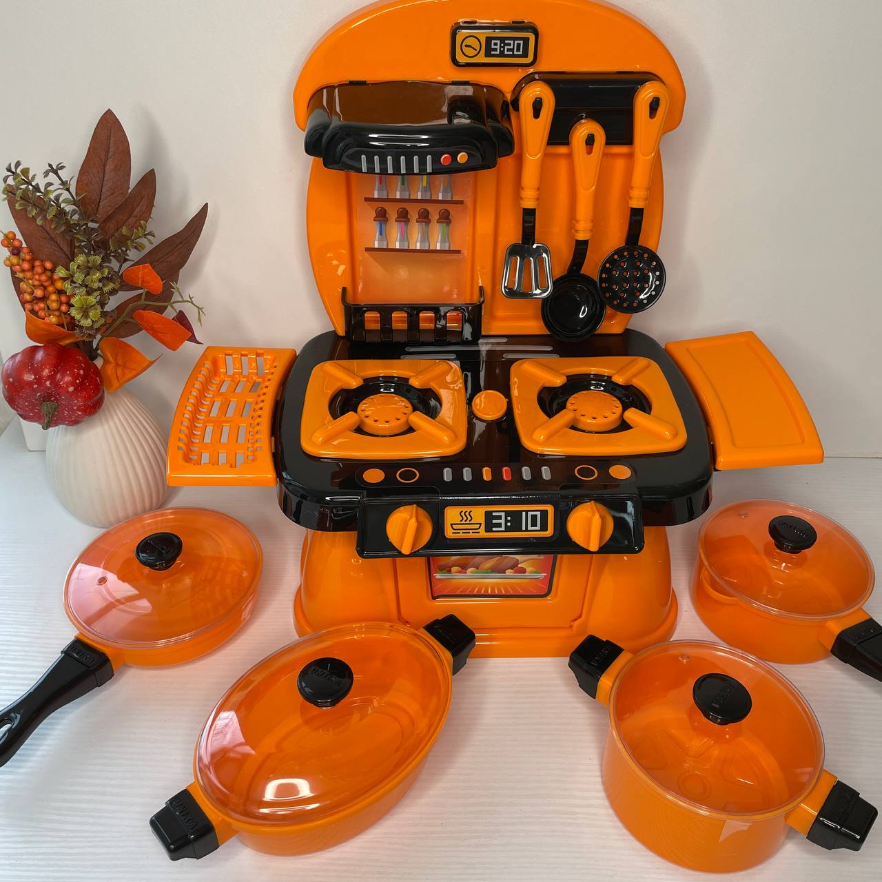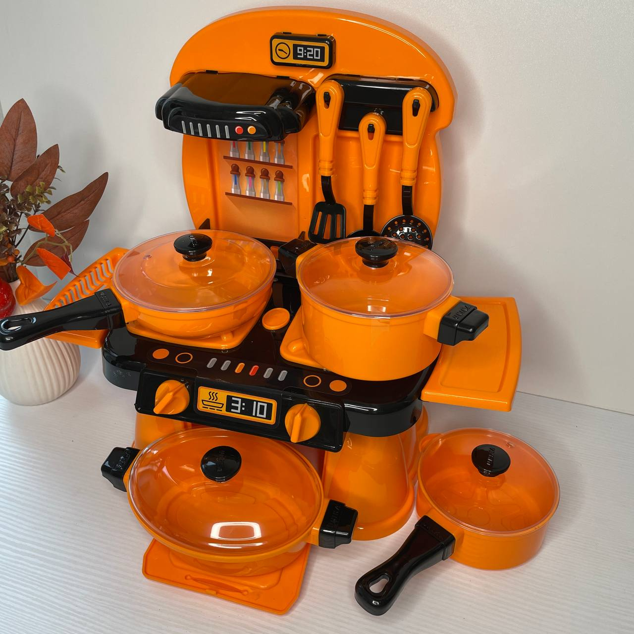 Набір іграшковго посуду з плитою "Cooking Plate with dishes" на 10 предметів в помаранчевий в коробці, 71771 Юніка