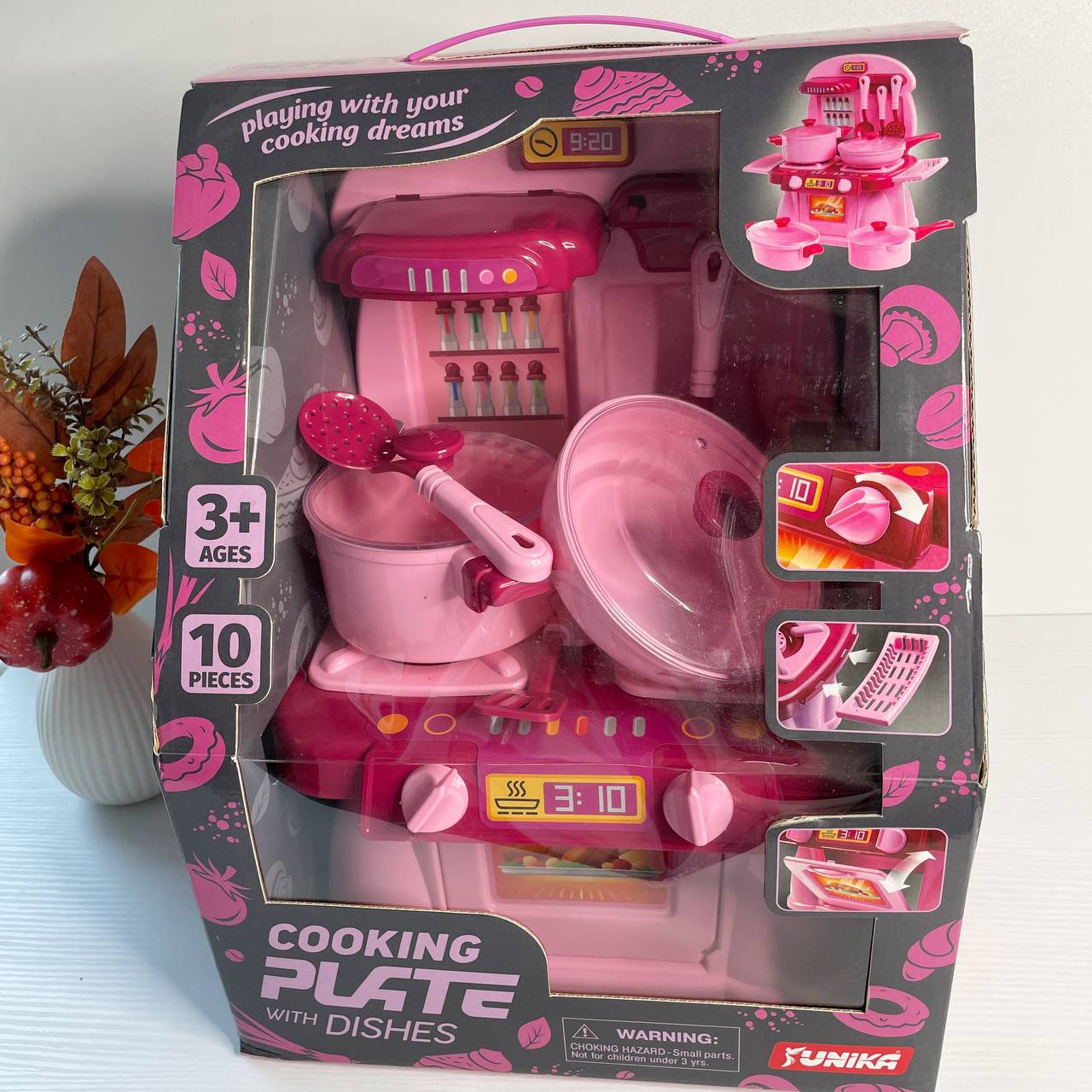Набір посуду з плитою "Cooking Plate with dishes" 10 предметів, в рожевій коробці 71788 Юніка