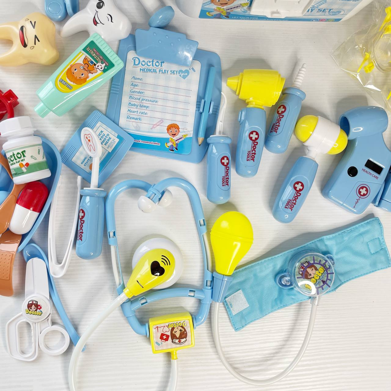 - інструменти з підсвічуванням: термометр, пульсометр, отоскоп, ліхтарик, стетоскоп;