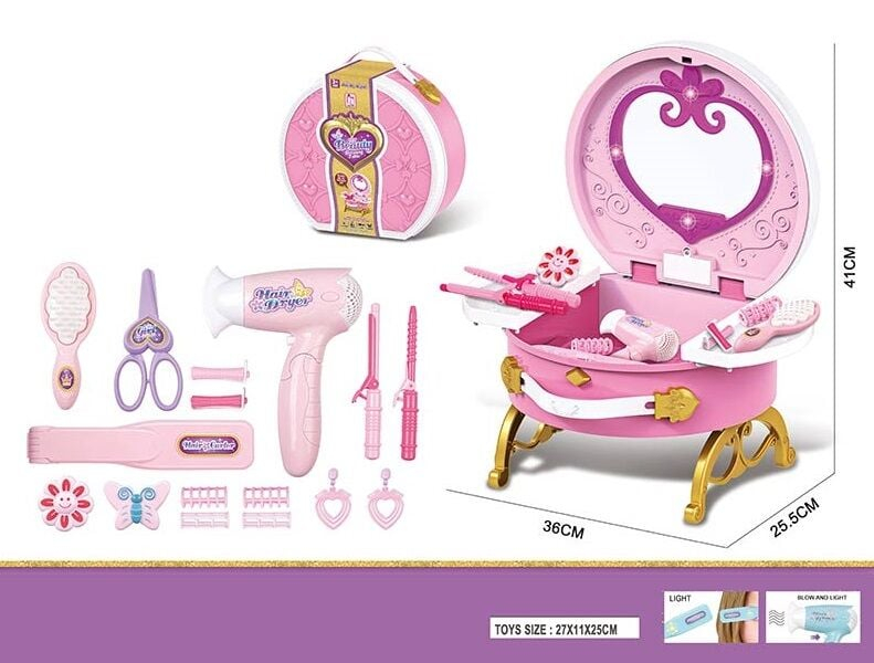 Ігровий набір перукаря у валізі: з фенoм, дзеркалом та вирівнювачем (світло, звук), 0807-36