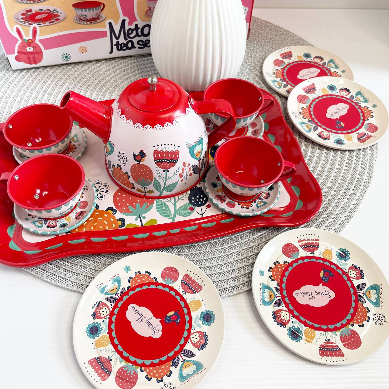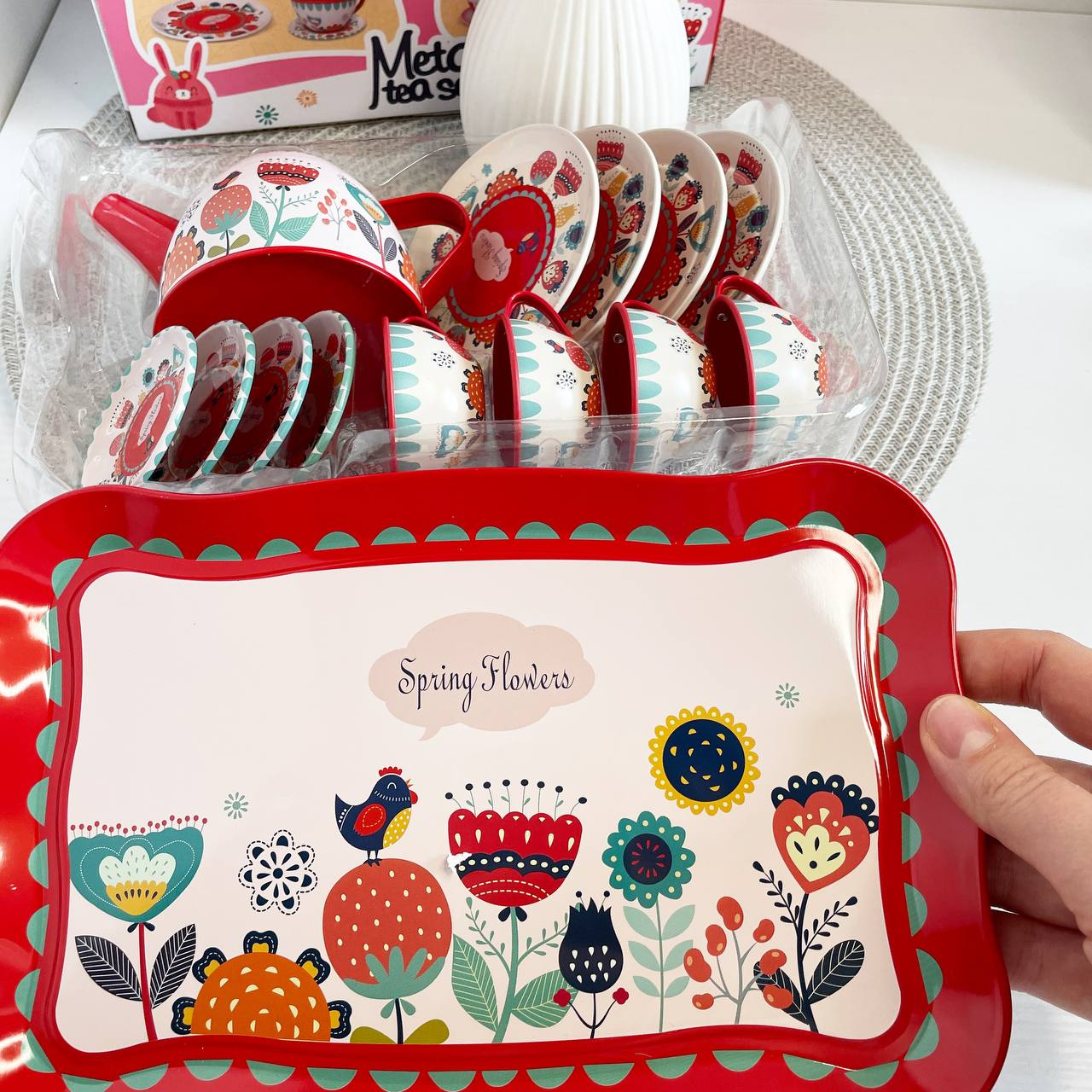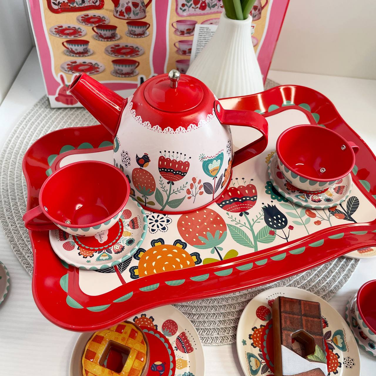 Іграшковий металевий чайний набір (сервіз) з тацею,620-C5